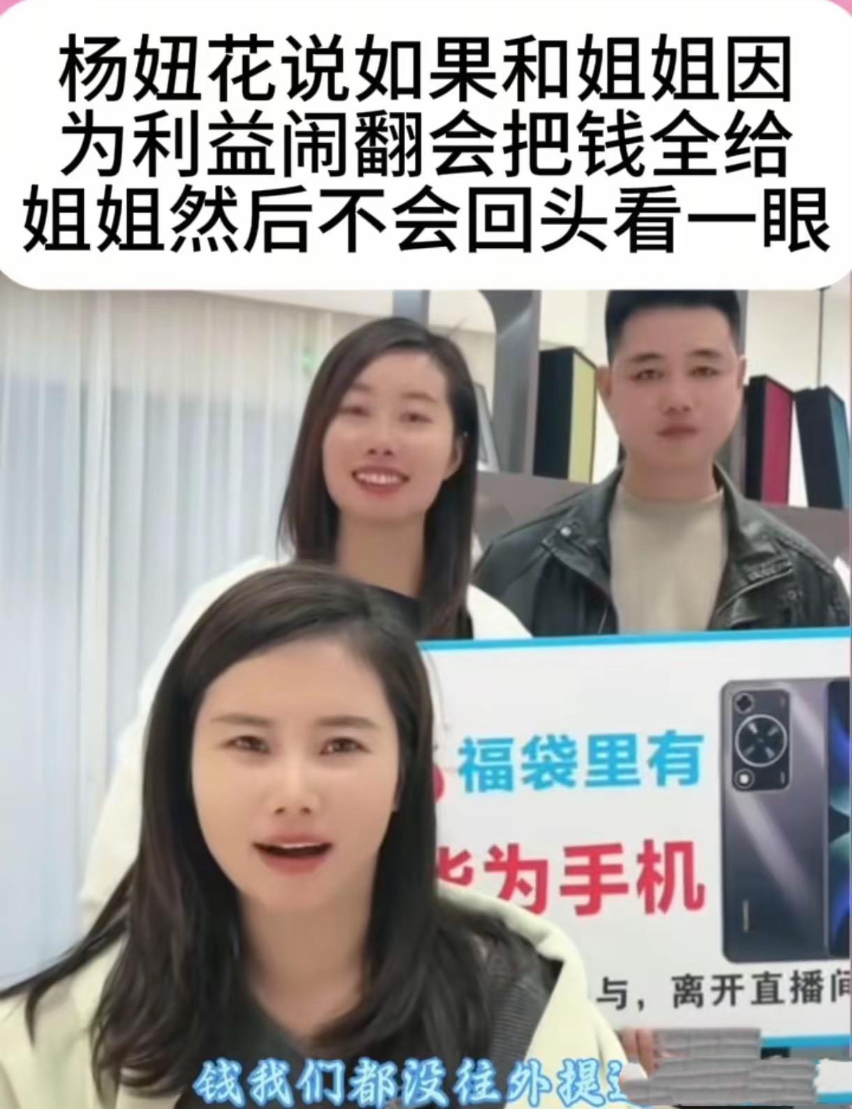 楊妞花和姐姐的感情完全不用質疑,她曾說過如果因爲利益和姐姐鬧翻,會把錢全部給姐姐,然後不會回頭看一眼。