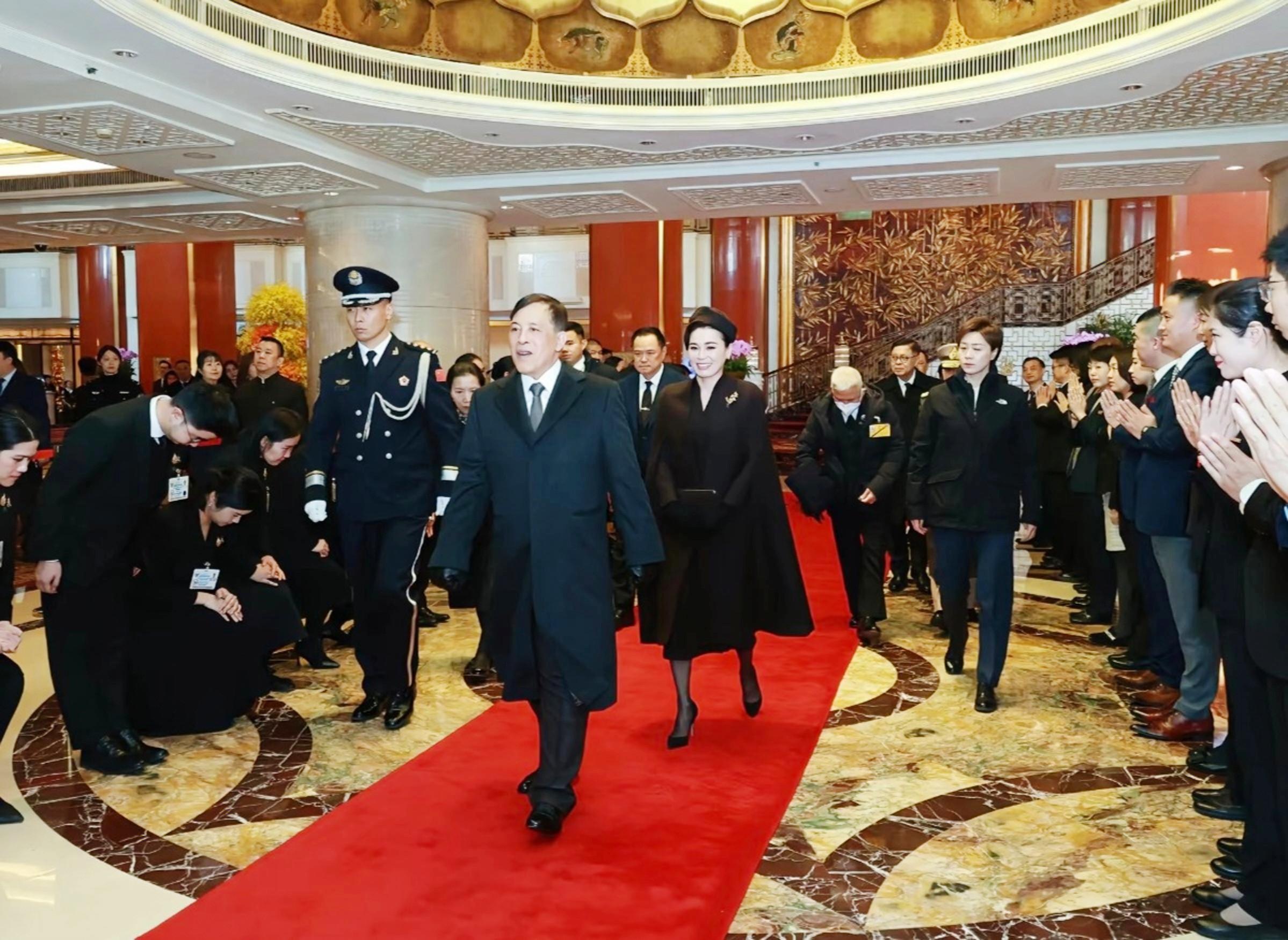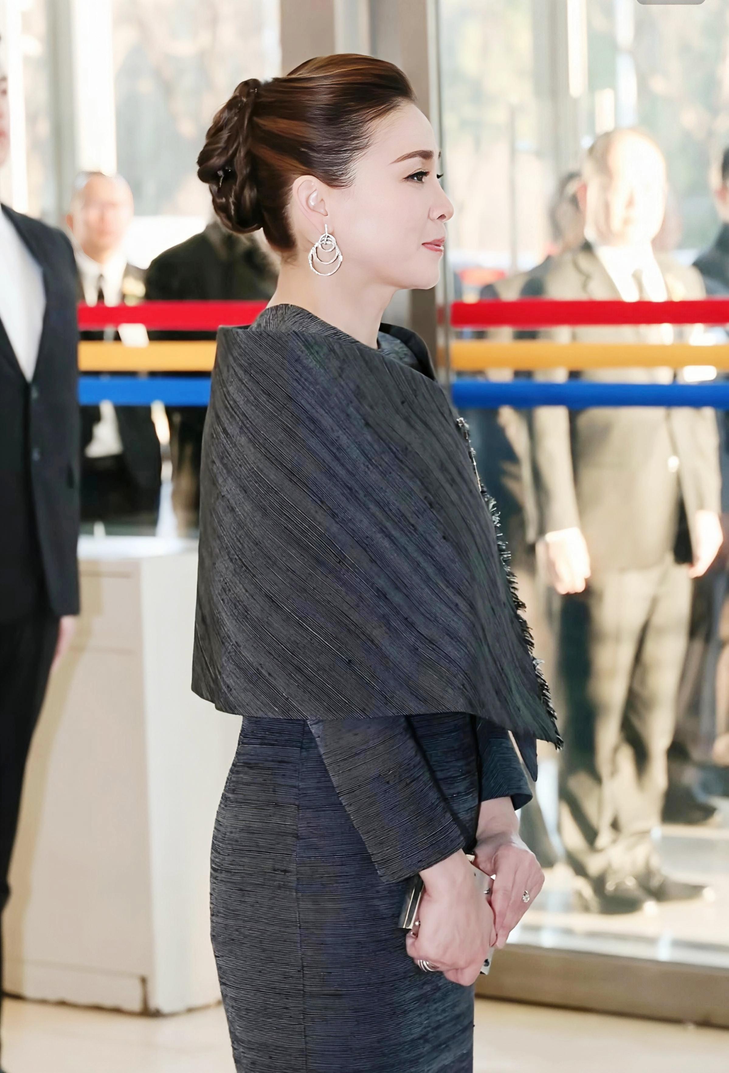 以黑色爲主色調的選擇,亦頗具深意。黑色既顯端莊大氣,又契合服喪期的禮儀要求,同時與北京冬日的蕭瑟氛圍相融 —— 一舉三得,足見其背後造型團隊的匠心。