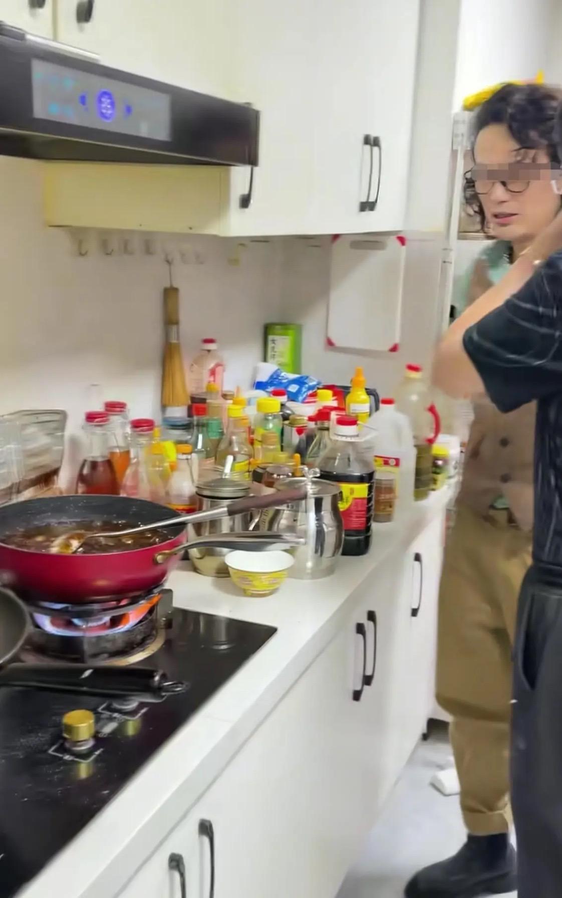 因爲家裏沒有女主人,侯老師也沒有請保姆,所以家裏的環境真是一言難盡。不僅櫥櫃上擺滿了瓶瓶罐罐,就連竈臺的牆面上都滿是油污。