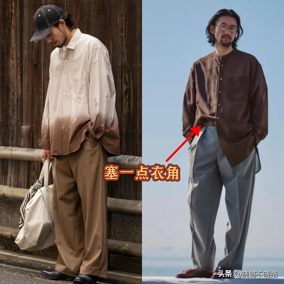 真是沒有對比就沒有傷害,中年男人和日本大叔穿襯衫,一個喜歡塞褲腰、扎腰帶,一個喜歡露出來穿,明明是很小的舉動,卻改變了整體的佈局和時尚感。