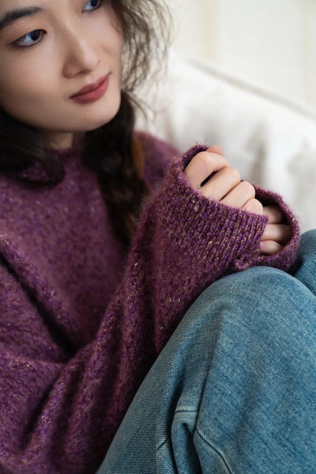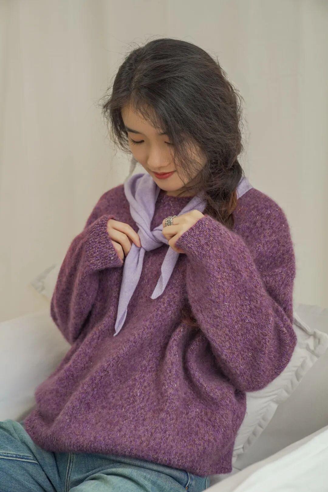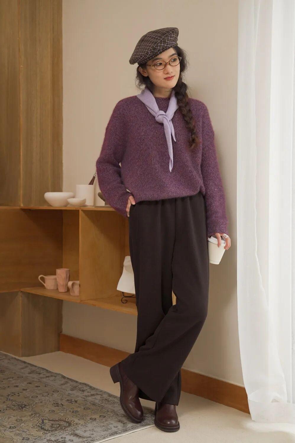 比如很受歡迎的石楠紫,裏面織入了絳紫、羅蘭紫和卡其色紗線,整體是那種溫柔又靈動的紫,一點不無聊。▼