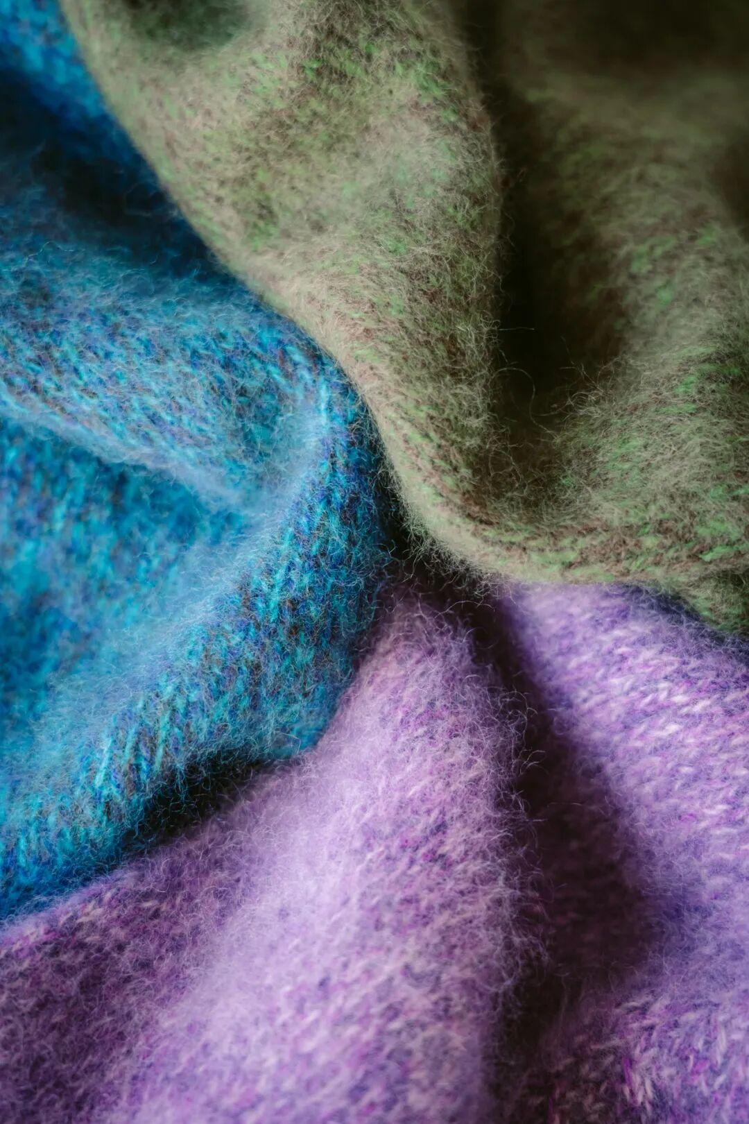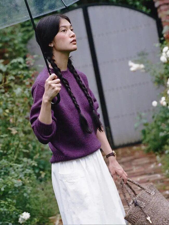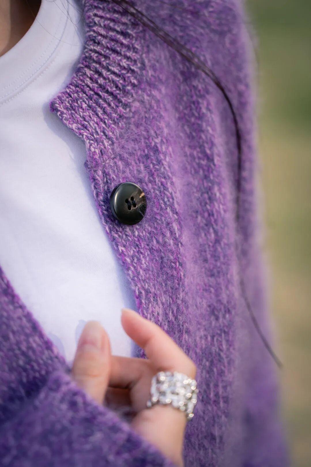 比如很受歡迎的石楠紫,裏面織入了絳紫、羅蘭紫和卡其色紗線,整體是那種溫柔又靈動的紫,一點不無聊。▼