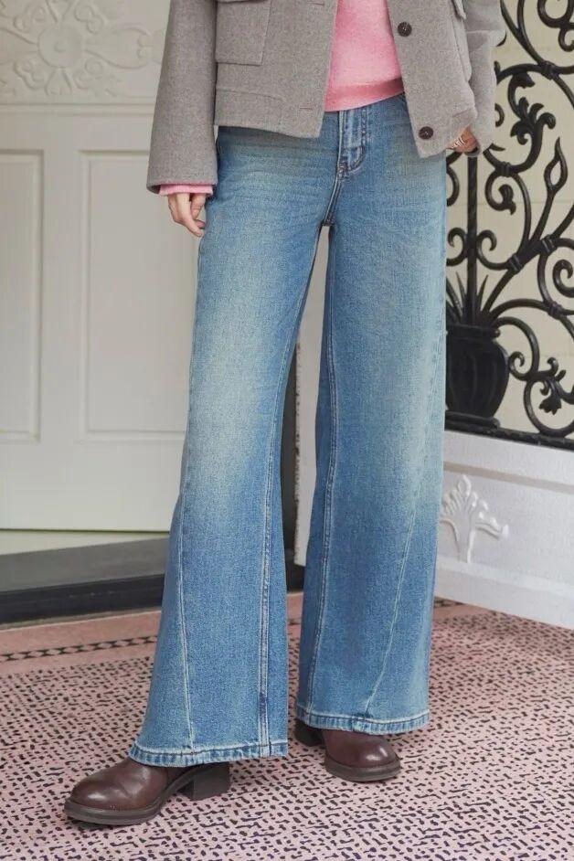 長度也做得剛剛好,經典的牛仔藍色,搭配秋冬的靴子,露出一點棕色鞋面,復古又有季節氛圍感。▼