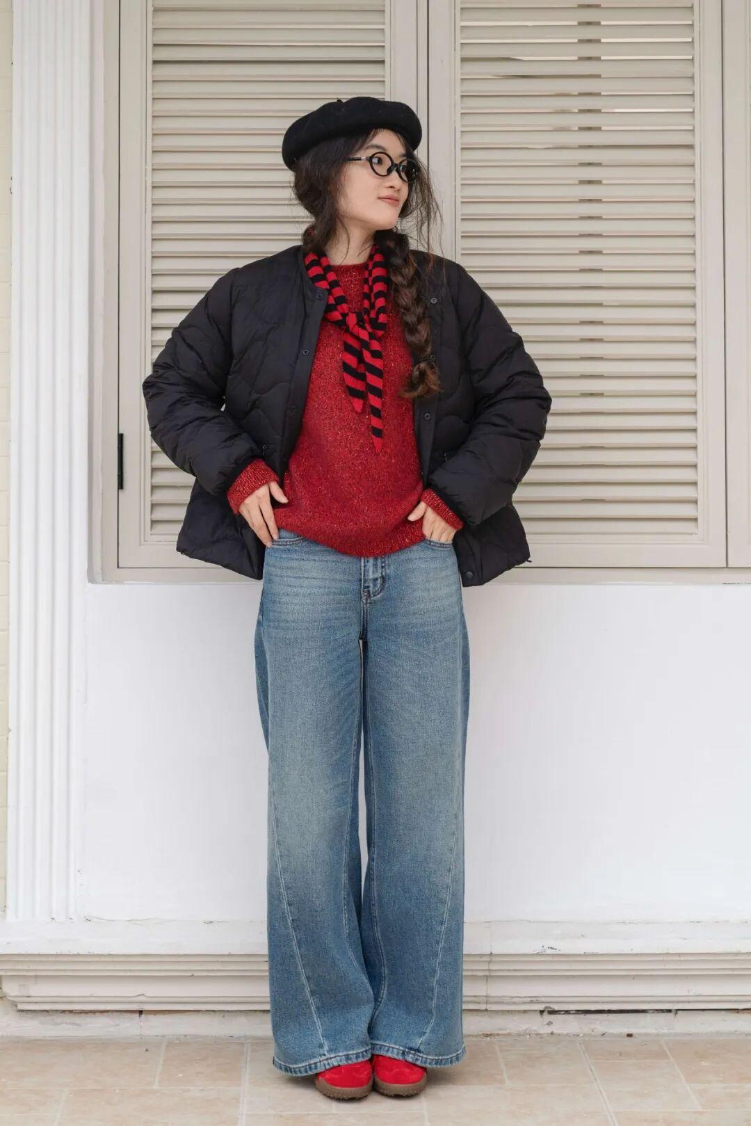 褲子也給大家挑了兩款:一條是保暖不臃腫的直筒休閒褲,另一條是超顯腿直的直筒牛仔褲,讓大家冬天也能輕鬆穿出利落感。▼