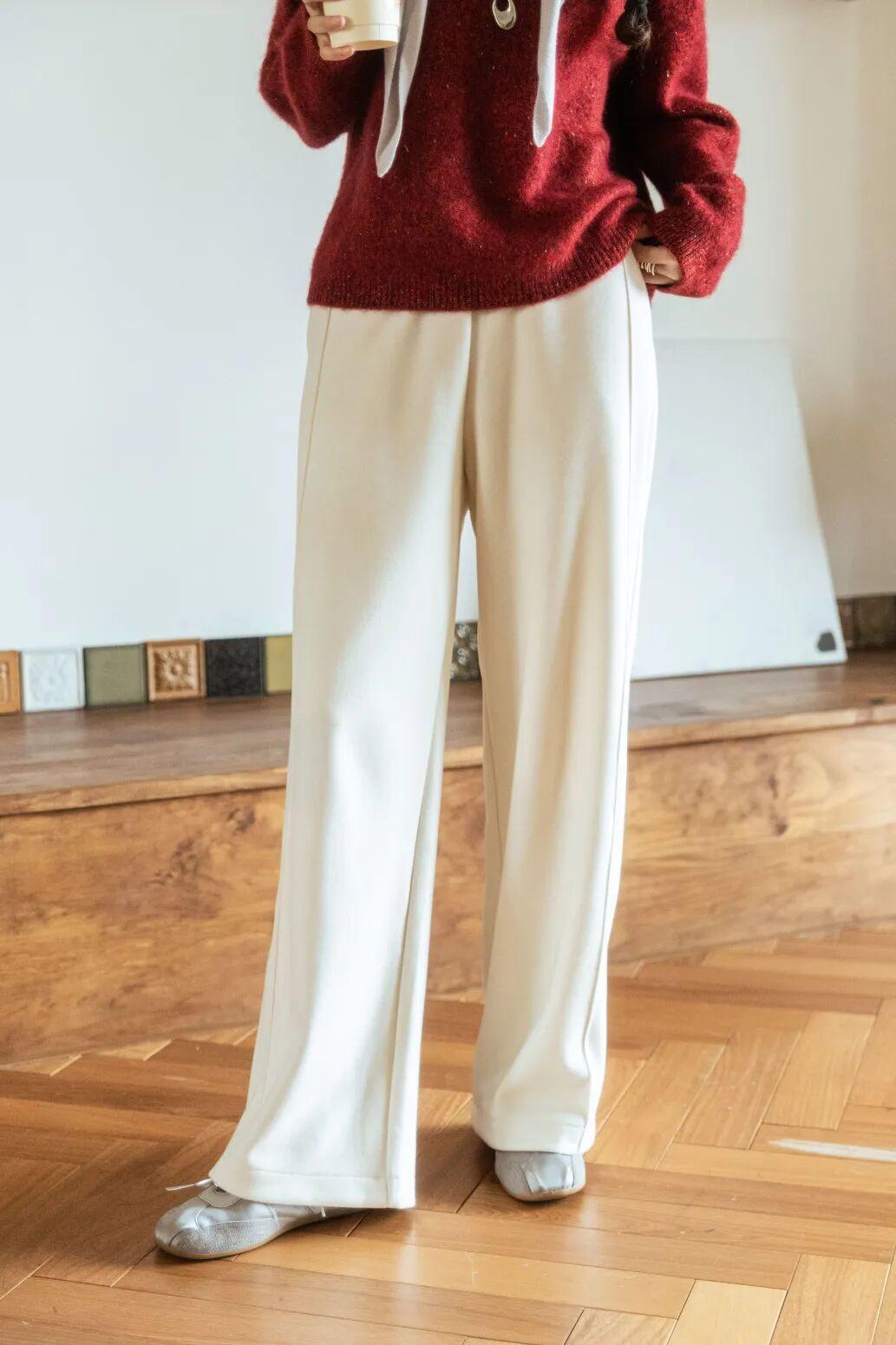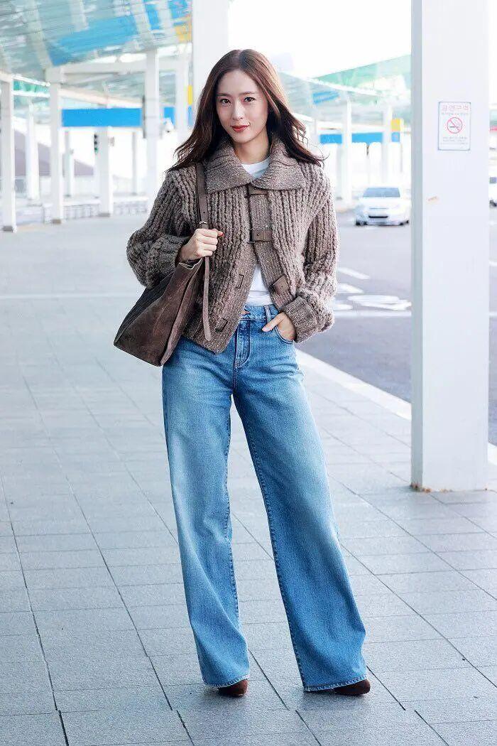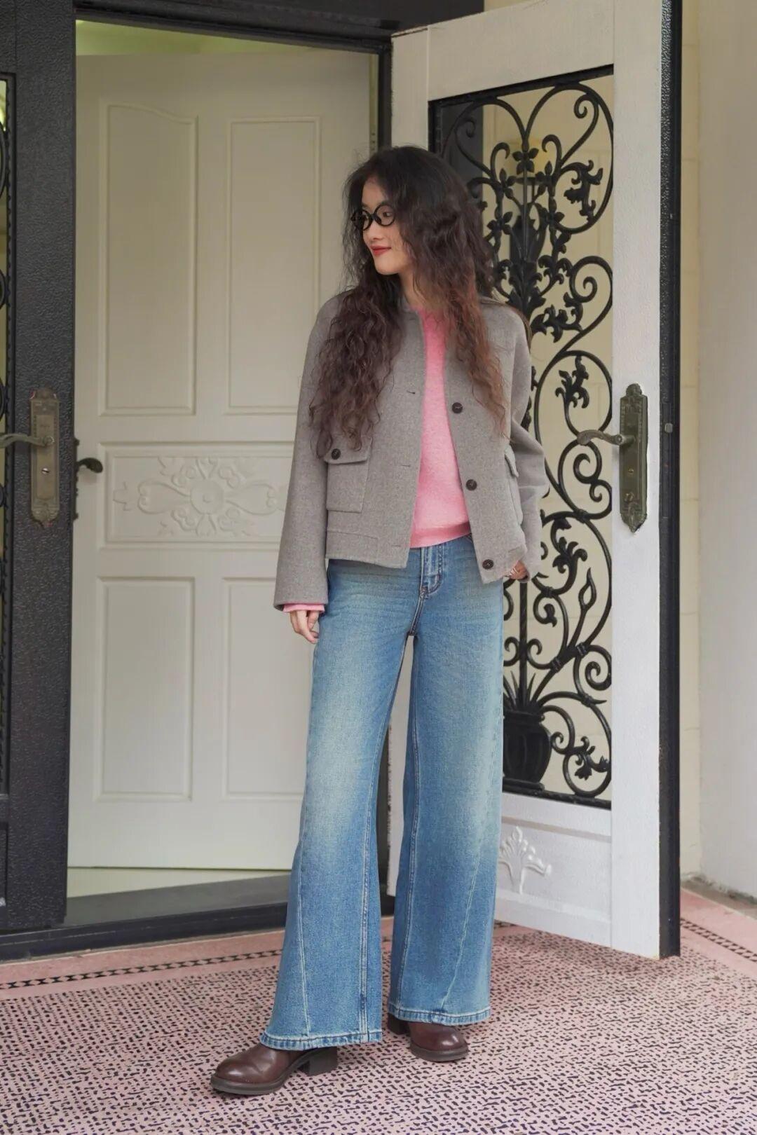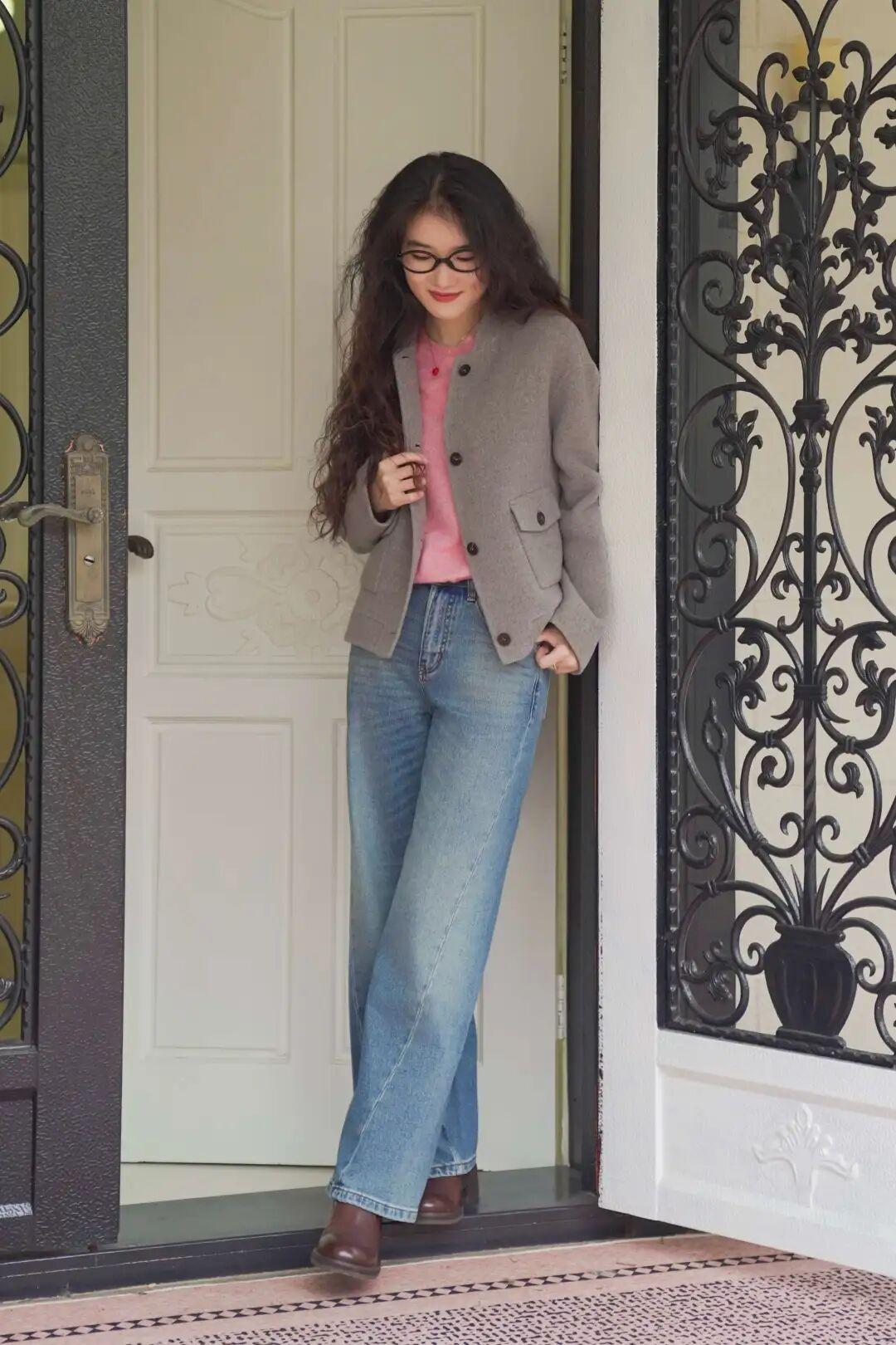 作爲梨形身材,她平時買褲子特別頭疼,但這條的直筒版型做得太到位了——穿上不僅修飾腿型,還顯得腿又直又長。