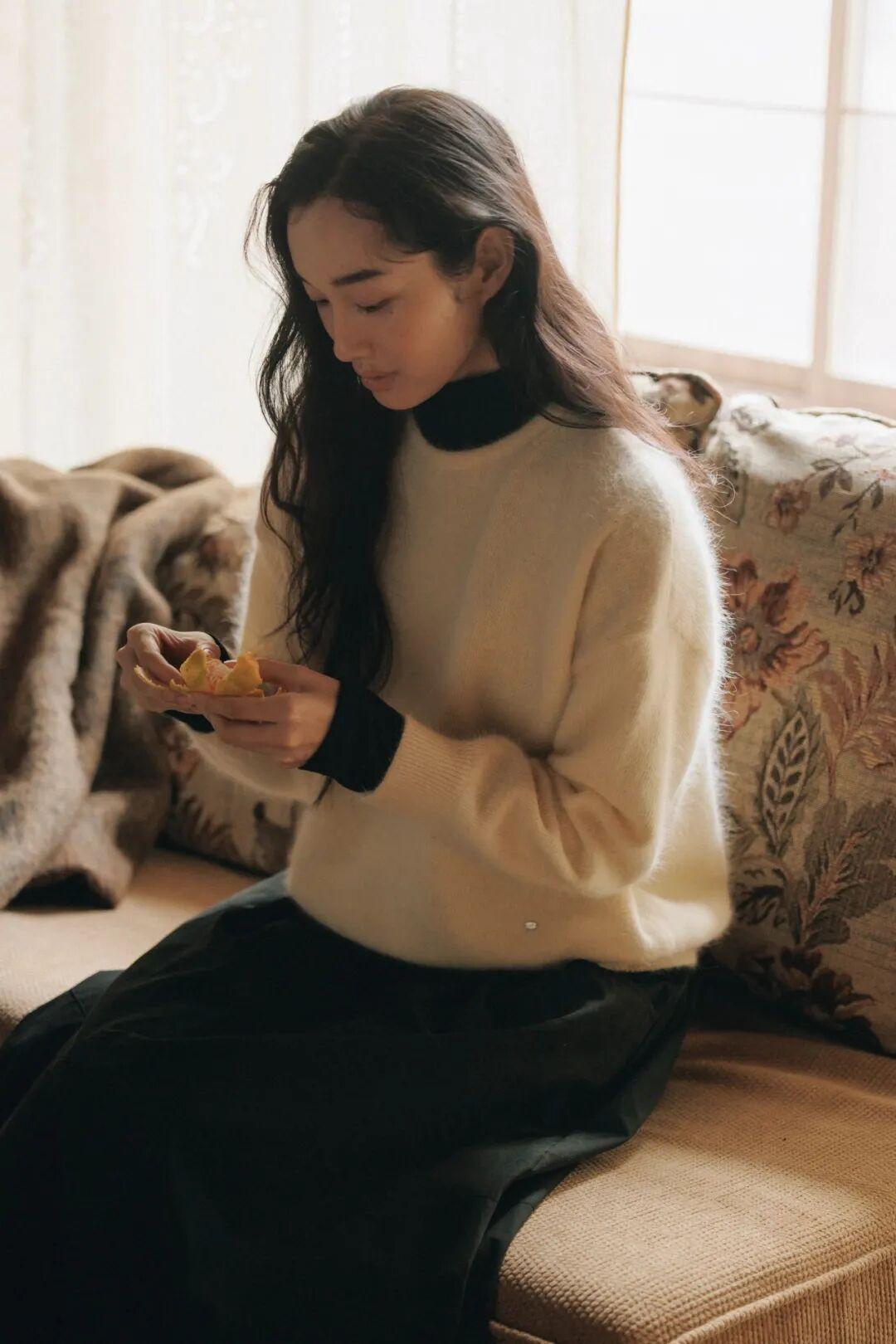 對南方的朋友來說,單穿這件345克的重磅羊絨衫,保暖力就完全足夠~