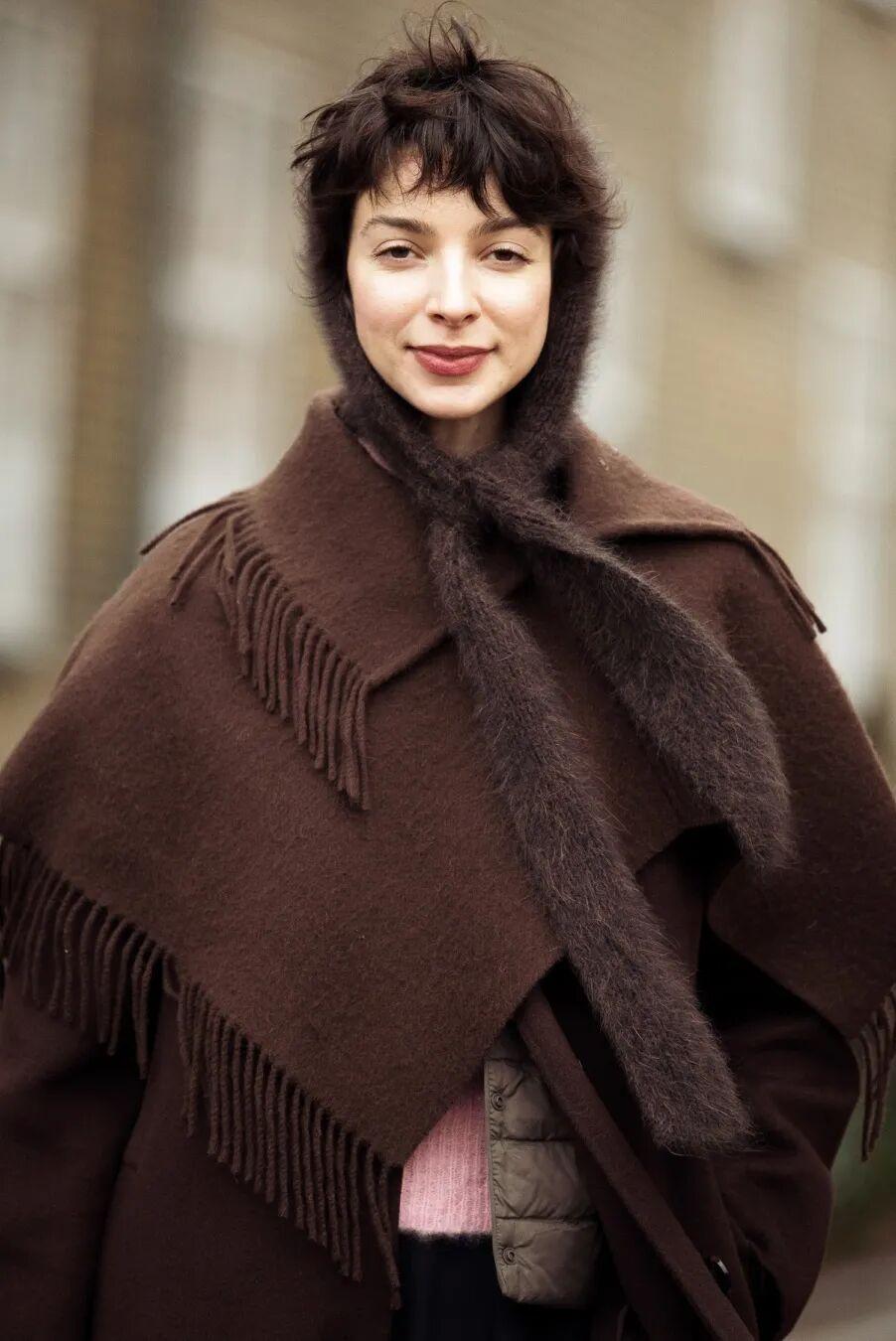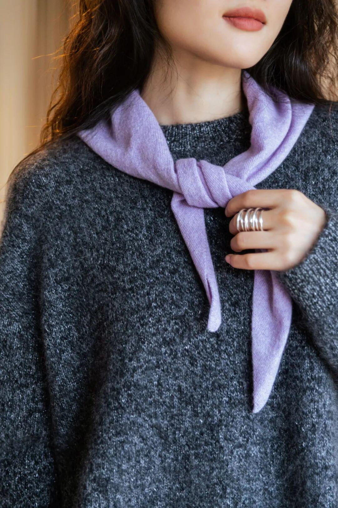 配上同色系的羊絨小方巾,溫柔又提氣,我自己也越看越心動!▼