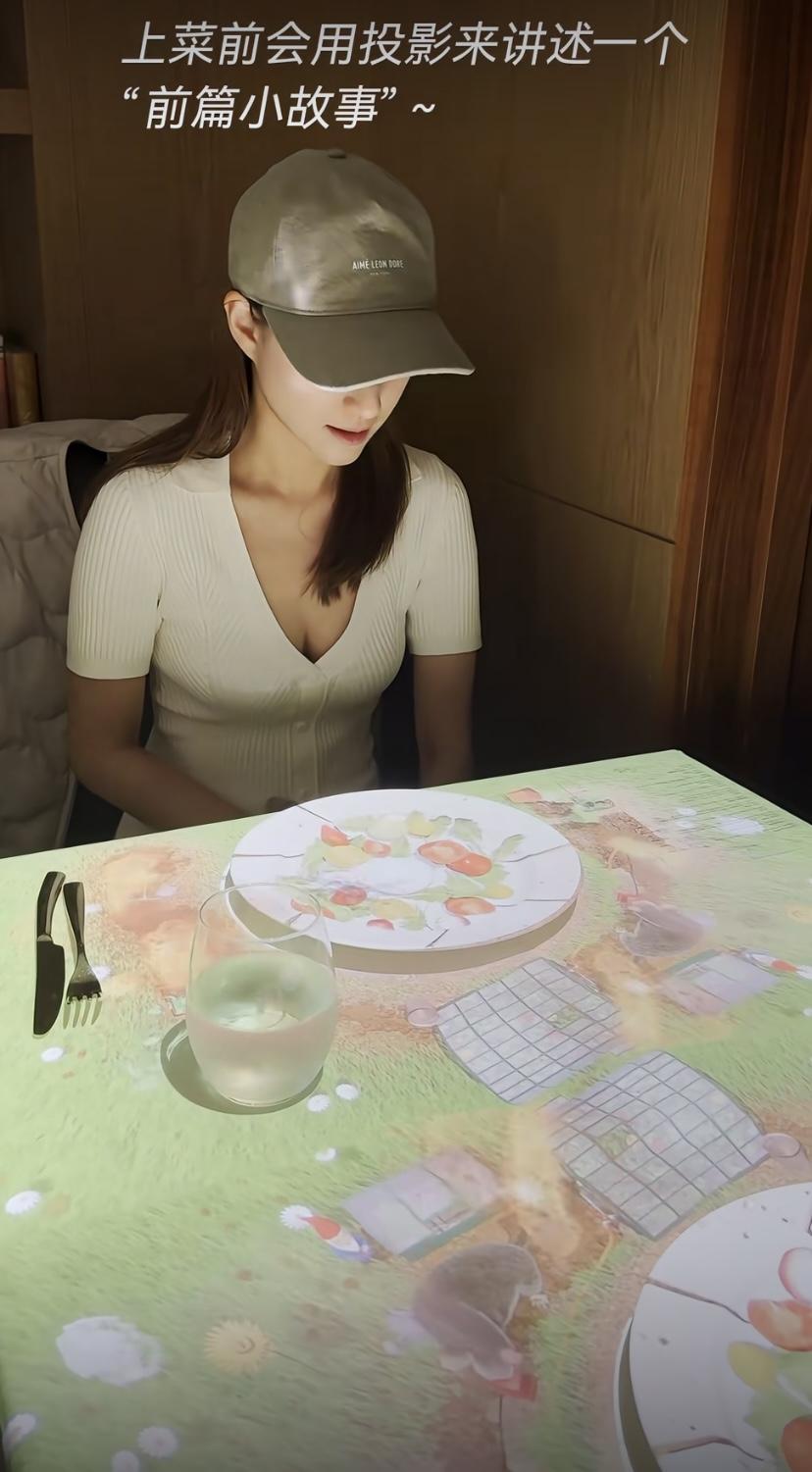 最有趣的是,在上菜前會用投影來講述一個“前篇小故事”。這樣的情景,就非常適合約會的小情侶,在溫暖的燈光下、一起感受那種靜謐和浪漫。