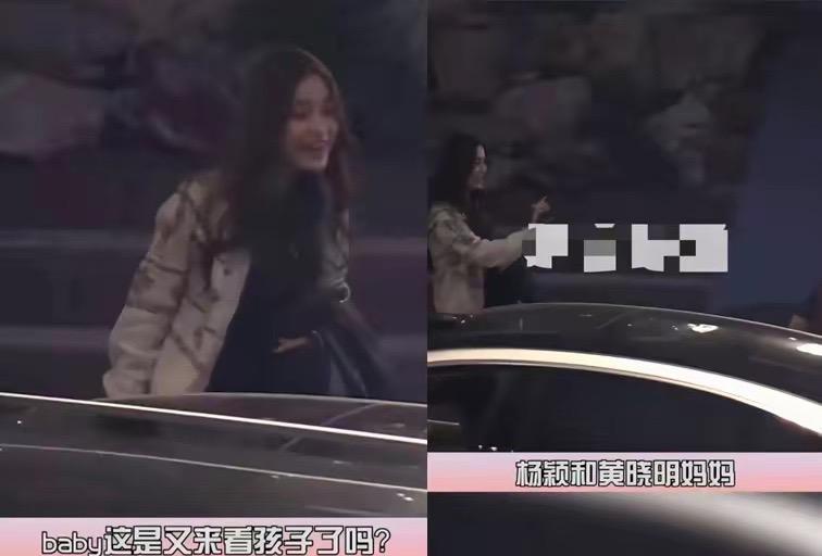 楊穎從車裏走下來,對面打招呼的小孩子像是小海綿。這段時間小海綿跟着爸爸黃曉明生活,楊穎大概率是來接兒子的。