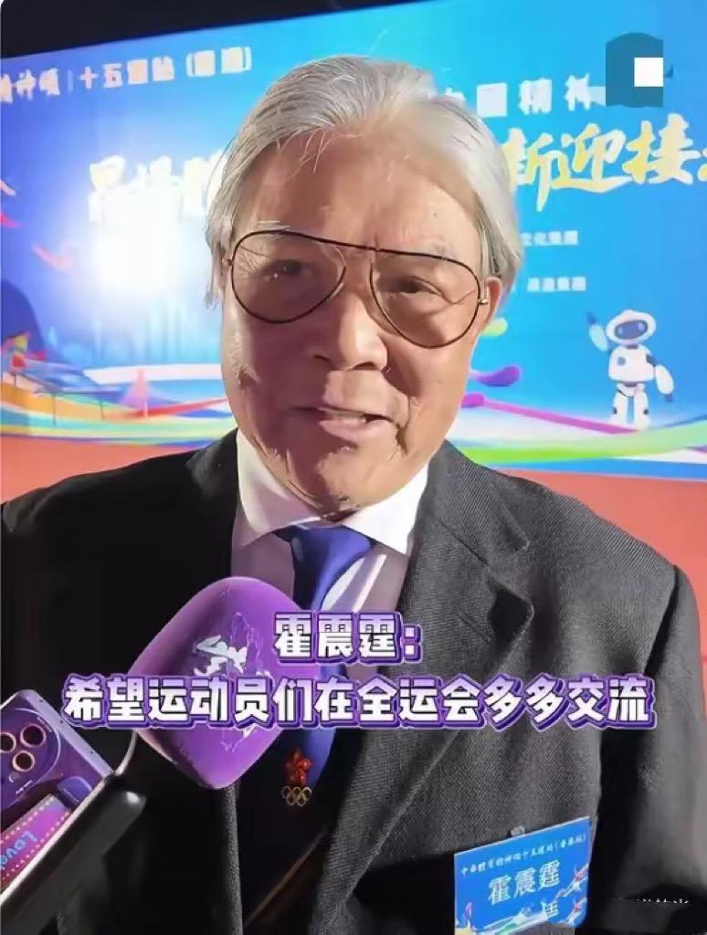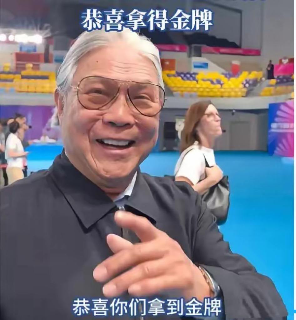 在全運會上,霍震霆還很開心的祝福隊員拿到金牌。他笑起來很慈祥,完全看不出豪門大家長的威嚴,只有一個老爺爺的慈祥。