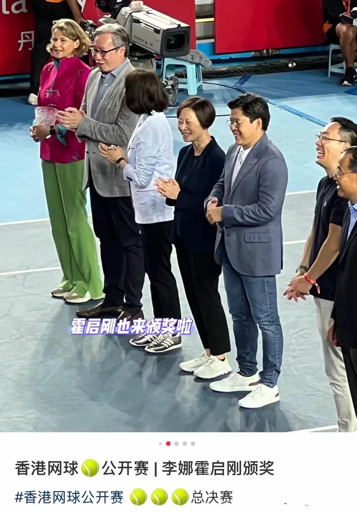 也有工作人員趕忙站起來和霍震霆握手,兩個人看起來相談甚歡的樣子。霍震霆應該是有幾天沒出現了,這次來看網球比賽大家都很驚喜。