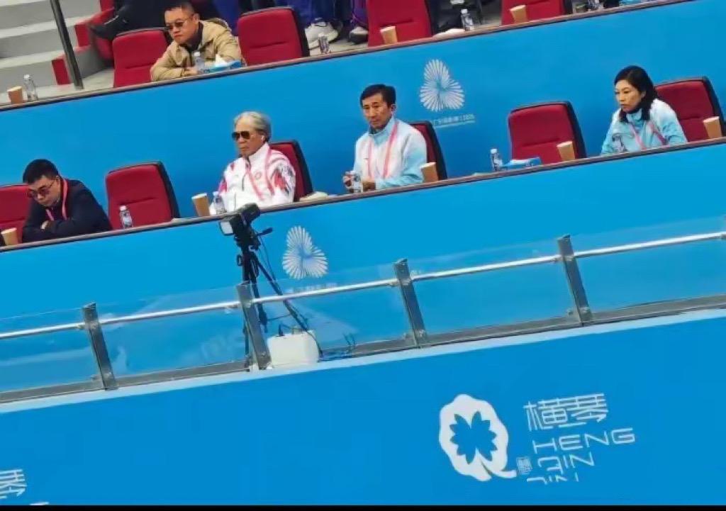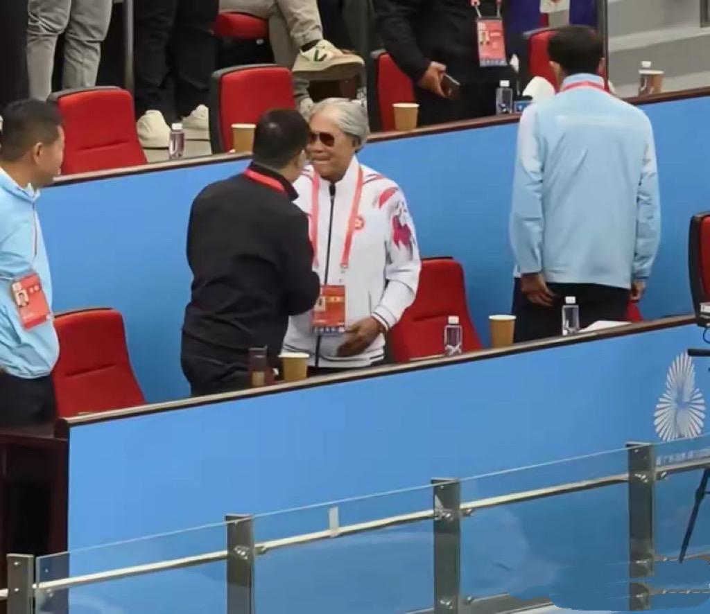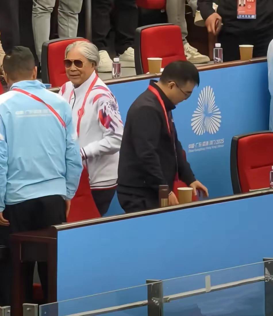 在全運會的網球賽場上,又看到了霍老爺子。他穿着香港隊服,坐在靠前排的位置上,視野沒有遮擋,這個位置一般都是工作人員、或者領導、評委坐的。