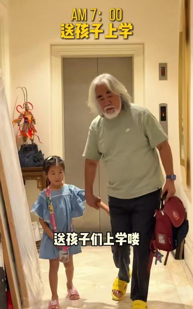 一手牽一個娃,送孩子們去上學。別人都是當爺爺的年紀了,張紀中才給孩子們當爸爸。他的生命體驗真實和多數人不一樣,而孩子們也沒有因爲爸爸的年紀而感覺到自卑。