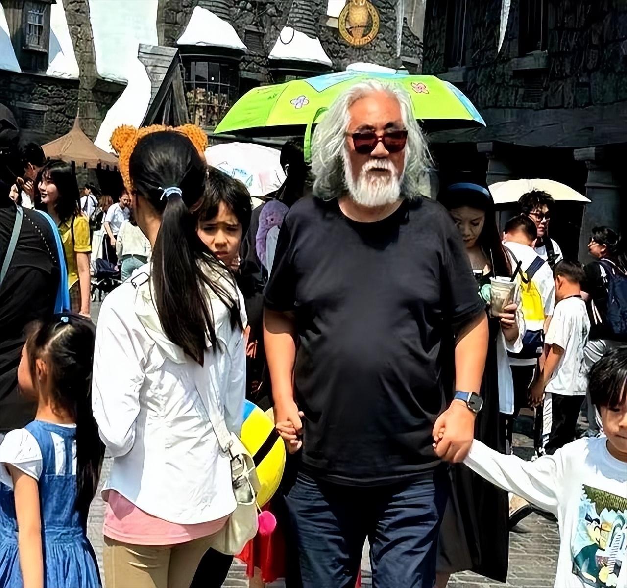 哪怕是在大熱天裏出門旅行,張紀中也是一手牽一個娃,充分擔起父親的責任。他形象很特別、心態很年輕。
