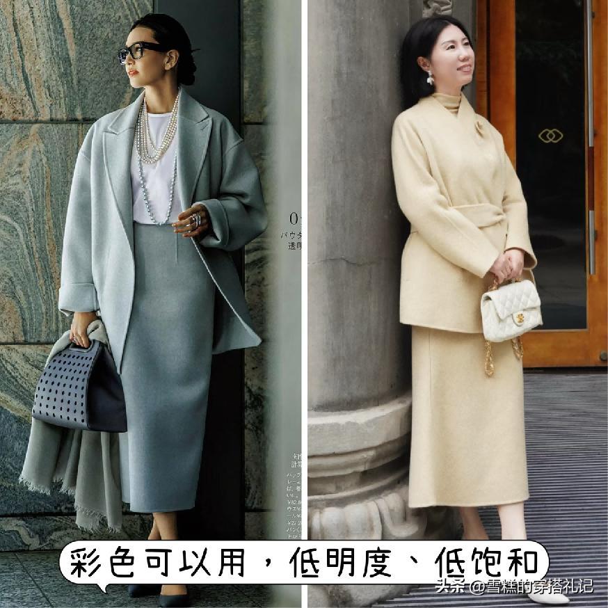 當然了,在上了年紀的時候,如果想要穿的更加減齡,又或者是時髦感強烈一些的話,那麼其實適合的彩色調也可以將其選擇進行入選的,但一定要保證你所選擇的色系是屬於明度較低,飽和度也很低的類型,才能夠保證我們所襯托出來的高級沉穩,以及減齡時髦的效果都是趨向於穩定感襯托的。