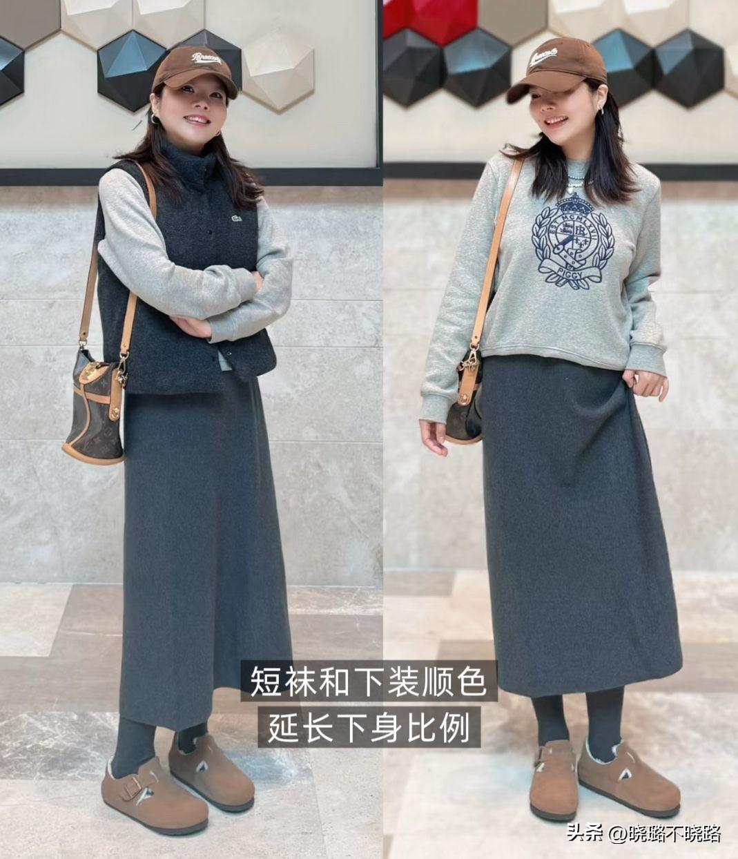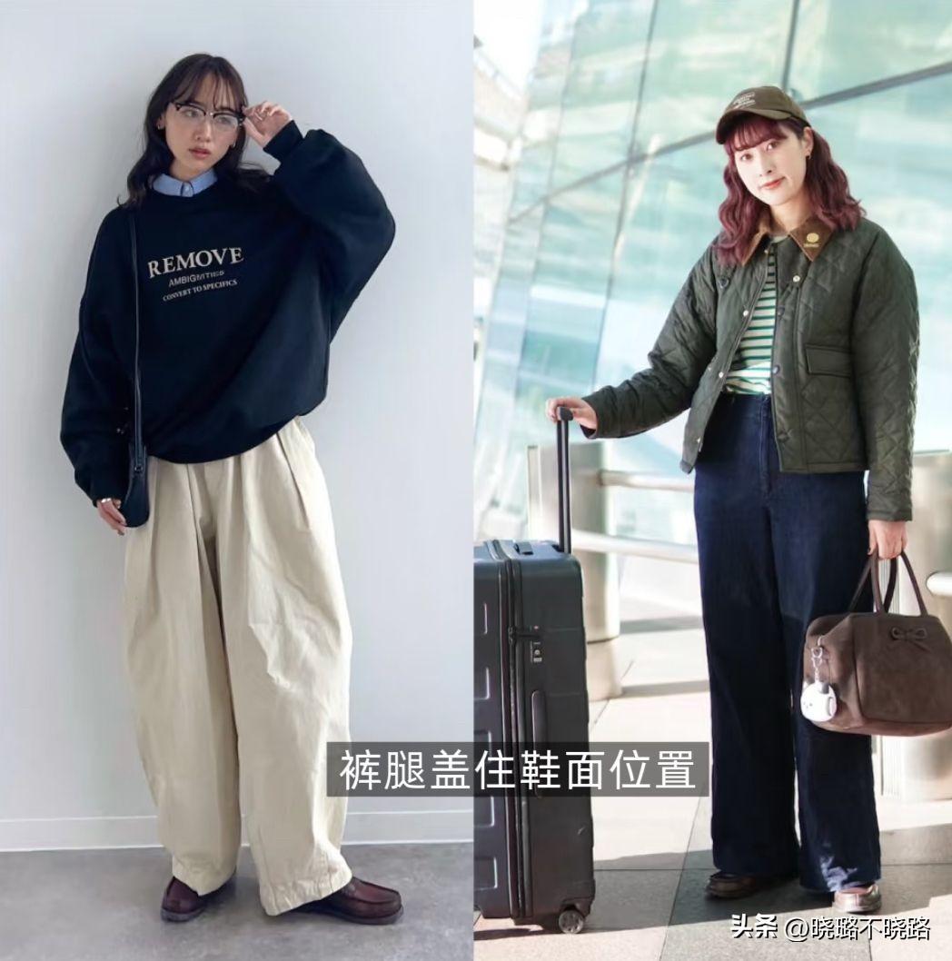 不管是配褲子還是裙子,都要優先選擇長款,不推薦直接露出腳踝穿,下裝的長度蓋住斜面2/3的位置,版型寬鬆一點,腳步纔會更輕盈,而且還不挑身材。
