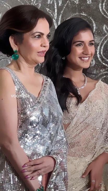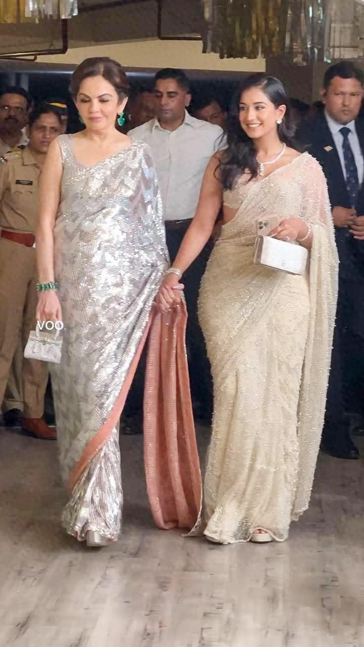 “珠寶是女人的第二語言。” 拉迪卡的穿搭從不缺少震撼力,卻總能在奢華中保持柔情。與婆婆同框的派對上,她身着 Manish Malhotra 定製的香檳色紗麗,紗麗上的 Zardozi 金線刺繡與婆婆價值 1400 萬的鑽石包相映成趣 —— 那顆顆鑽石,正如印度諺語 “一粒鑽石抵十年辛勞”,足以讓普通人奮鬥一生。