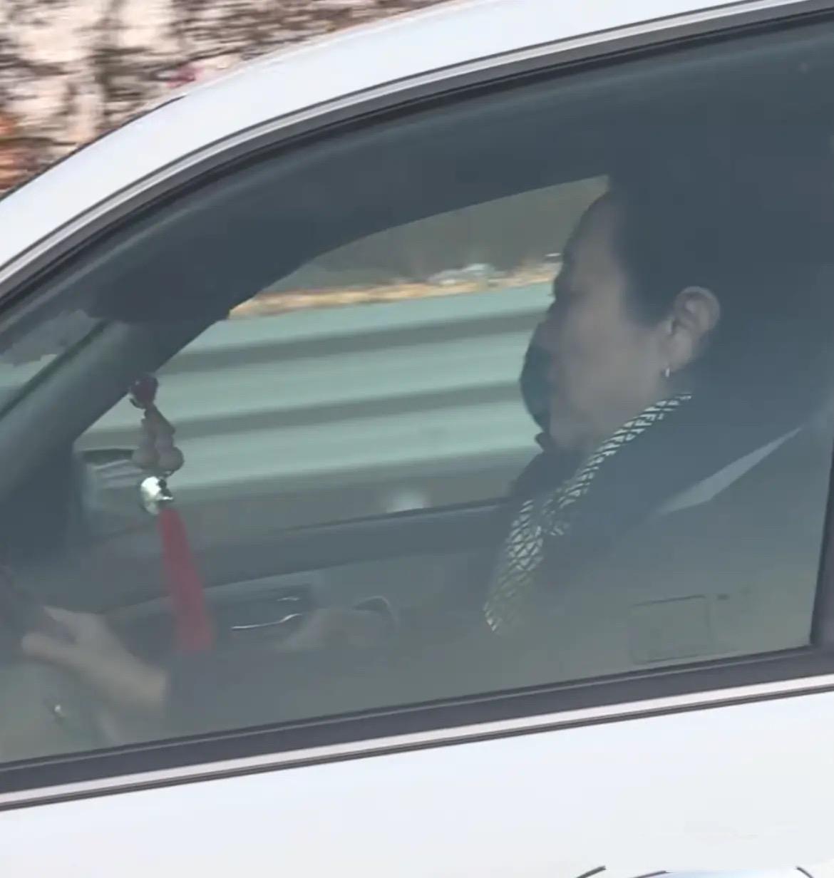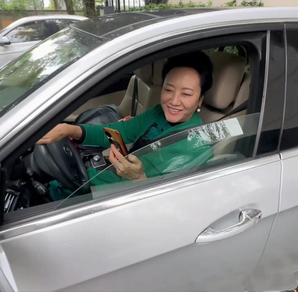 王麗雲坐在駕駛室,是親自掌控方向盤的。她穿了一身黑色衣服,繫着精緻的絲巾,看起來很優雅貴氣特別富態。