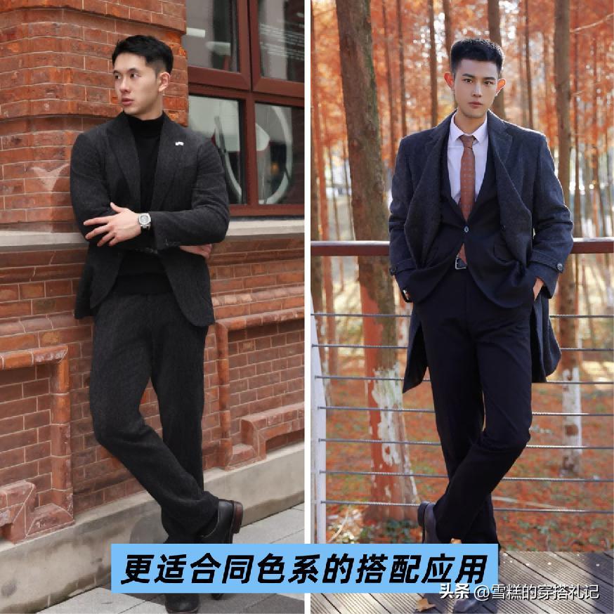 在這裏也要給大家提個醒,西裝成套來進行搭配的時候,儘量是能夠運用於同色系的組合呈現,尤其是暗色調當中的黑色和深藍色,還有就是大地色,在今年當中都是屬於非常時髦,而且能夠襯托出來高級和利落感。最主要的是沉穩自然的感覺,對於每一個男性而言都是十分重要的。而且還要運用於比較正式的場合當中。