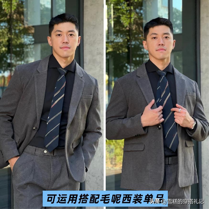 第二款推薦大家在冬季當中可以首選將其進行入手搭配的,就是能夠襯托出來高級感的毛呢西裝,因爲材質的保暖性會比較高一些,所以在冬季當中的時候,大家也可以放心的將其進行選擇,還是和大衣一樣可以入選暗色調的搭配,襯托出來的沉穩感和高級感更明顯,版型的狀態就選擇略微寬鬆的設計哦。