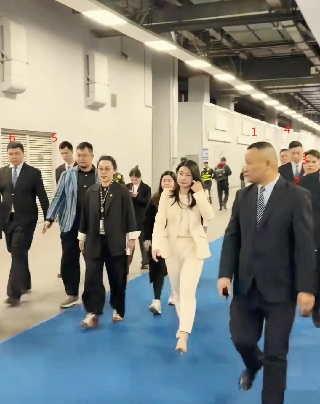 郭晶晶參加活動有排面,8名保鏢護駕太有範,白色西裝+高跟鞋太颯