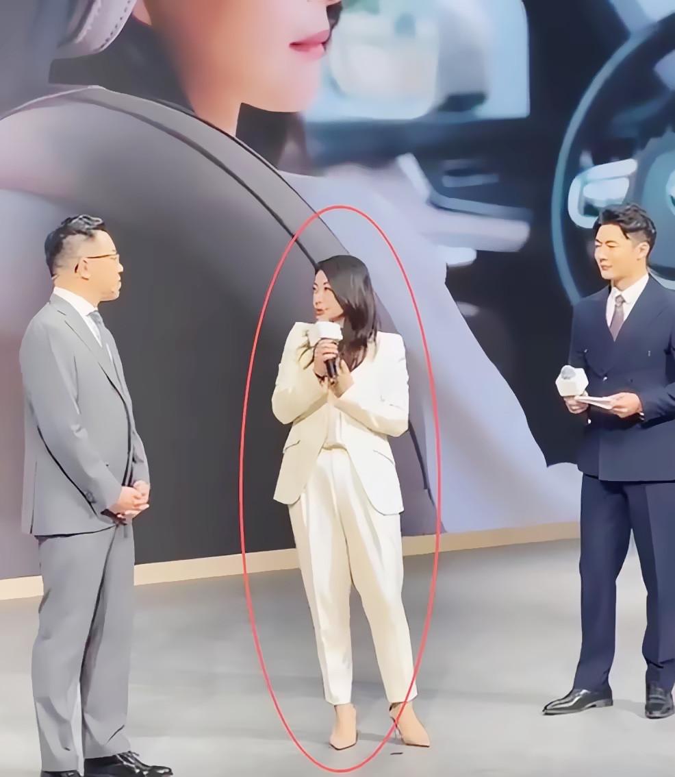 廣州車展上的這套造型,選用挺括卻不僵硬的面料,西裝線條流暢不張揚,襯衫領口自然舒展,搭配同色系窄腿褲勾勒出利落身形,既符合品牌代言的專業調性,又暗合她 “生命至上” 的公益主張。