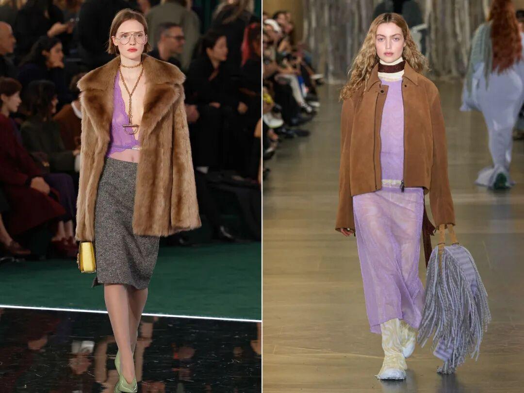 Gucci2025秋冬大秀(左)和Holzweiler2024秋冬系列(右)都有類似的棕+紫的配色。▼