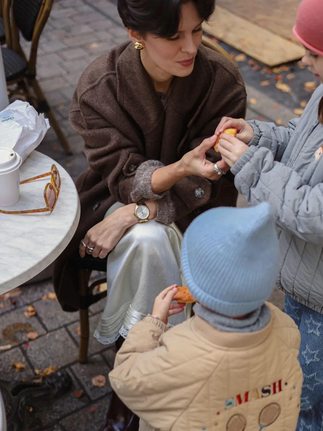 穿棕色外套時,很推薦搭配一件白色內搭,這對我們亞洲人的膚色特別友好。