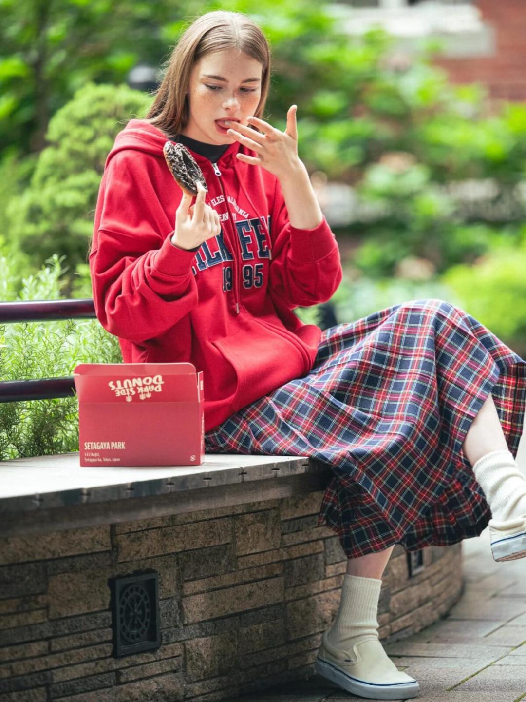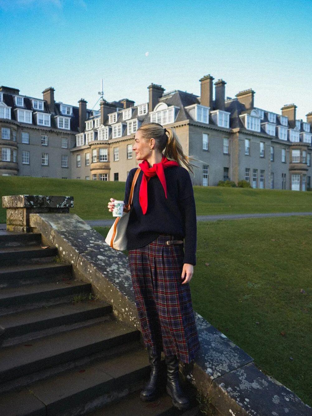 紅色格紋更復古經典,穿多久也不過時。 ▼