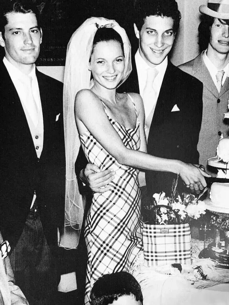 而到了90年代,不少品牌都用格紋演繹過叛逆的朋克精神。Kate moss在 Burberry裏的廣告裏直接穿起了格紋婚紗。 ▼