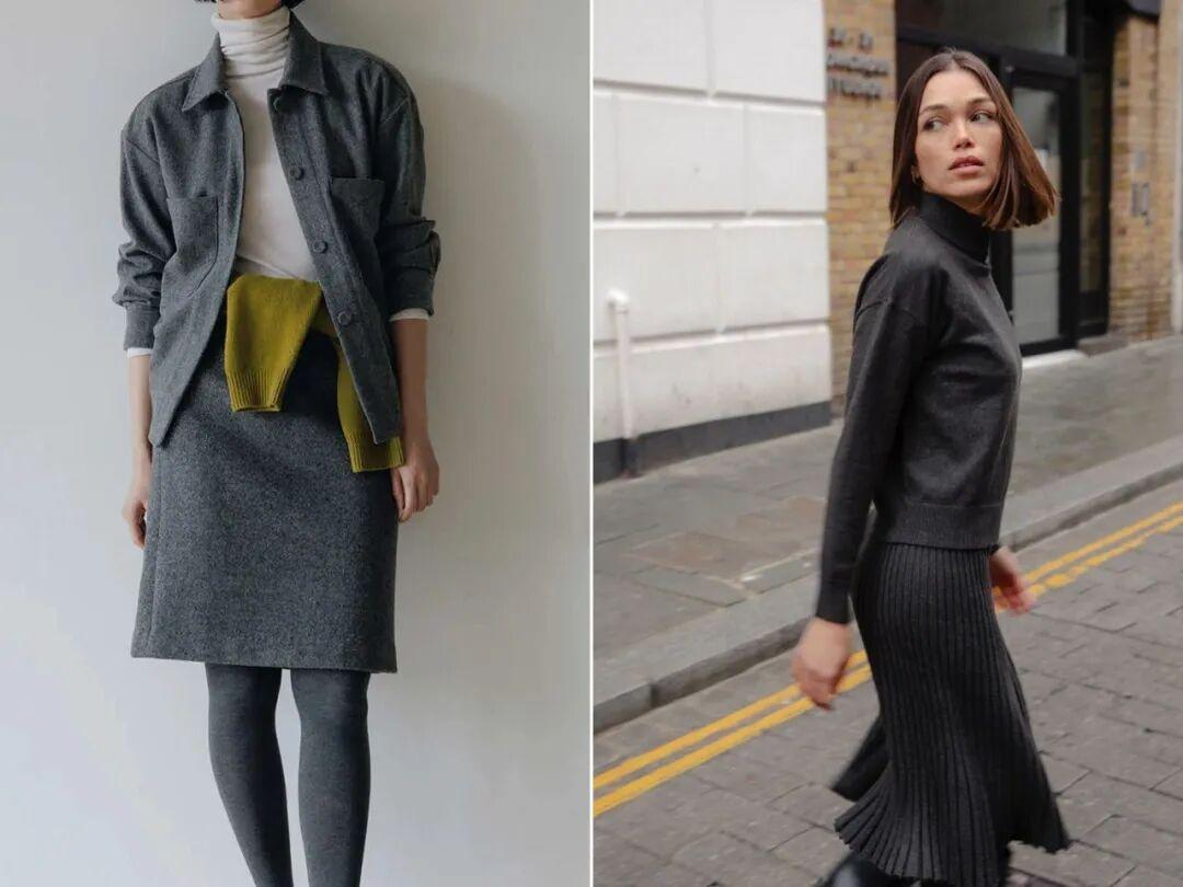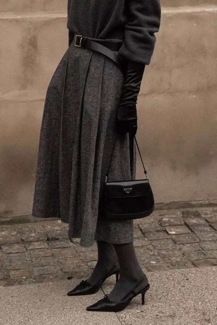 今年隨處可見毛呢裙的身影,尤其是灰色系。▼