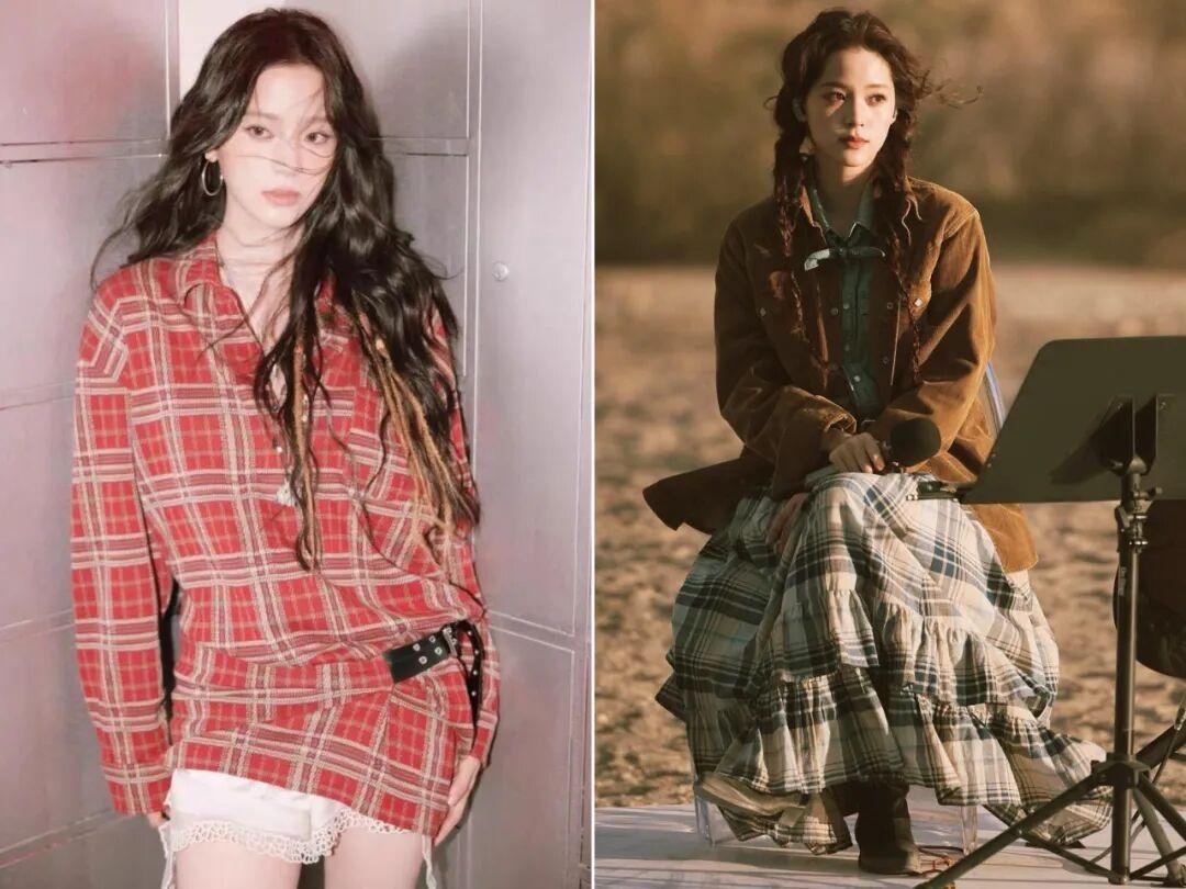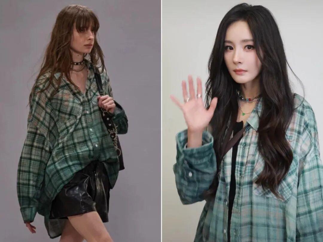 楊冪最近也穿過一件Grunge風的格紋襯衫。 ▼