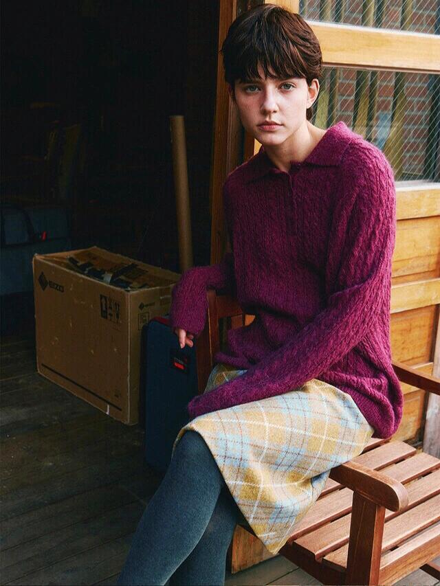 巧克力棕毛衣+酒紅迷笛裙,像不像冬日壁爐裏跳躍的小火苗?溫暖又治癒~ ▼