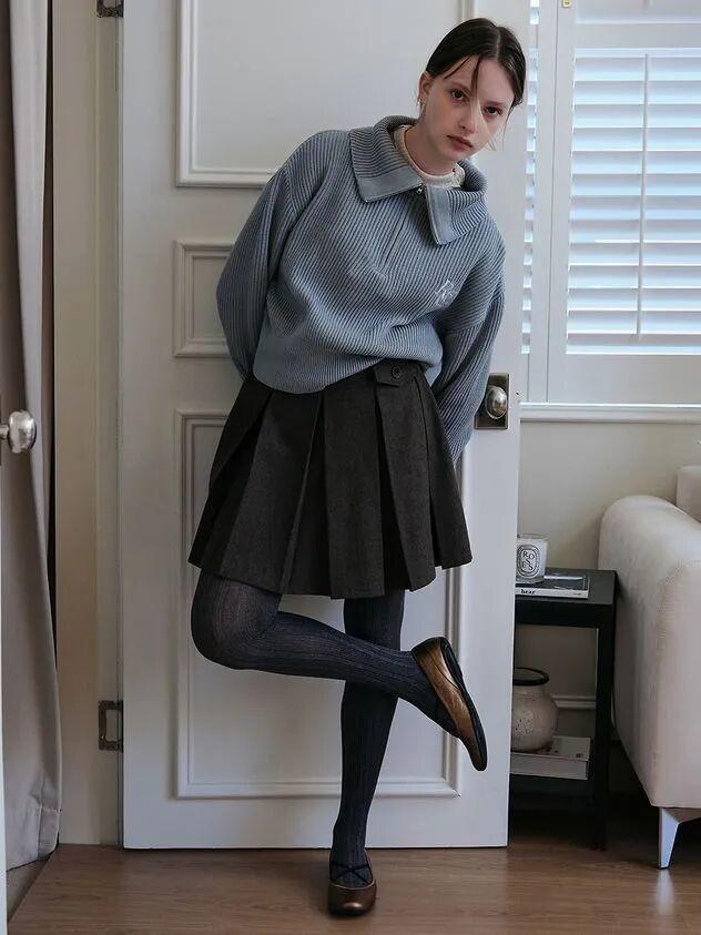 這也是很多韓國博主偏愛的款式,褲襪+瑪麗珍鞋這個組合也可以照搬。 ▼