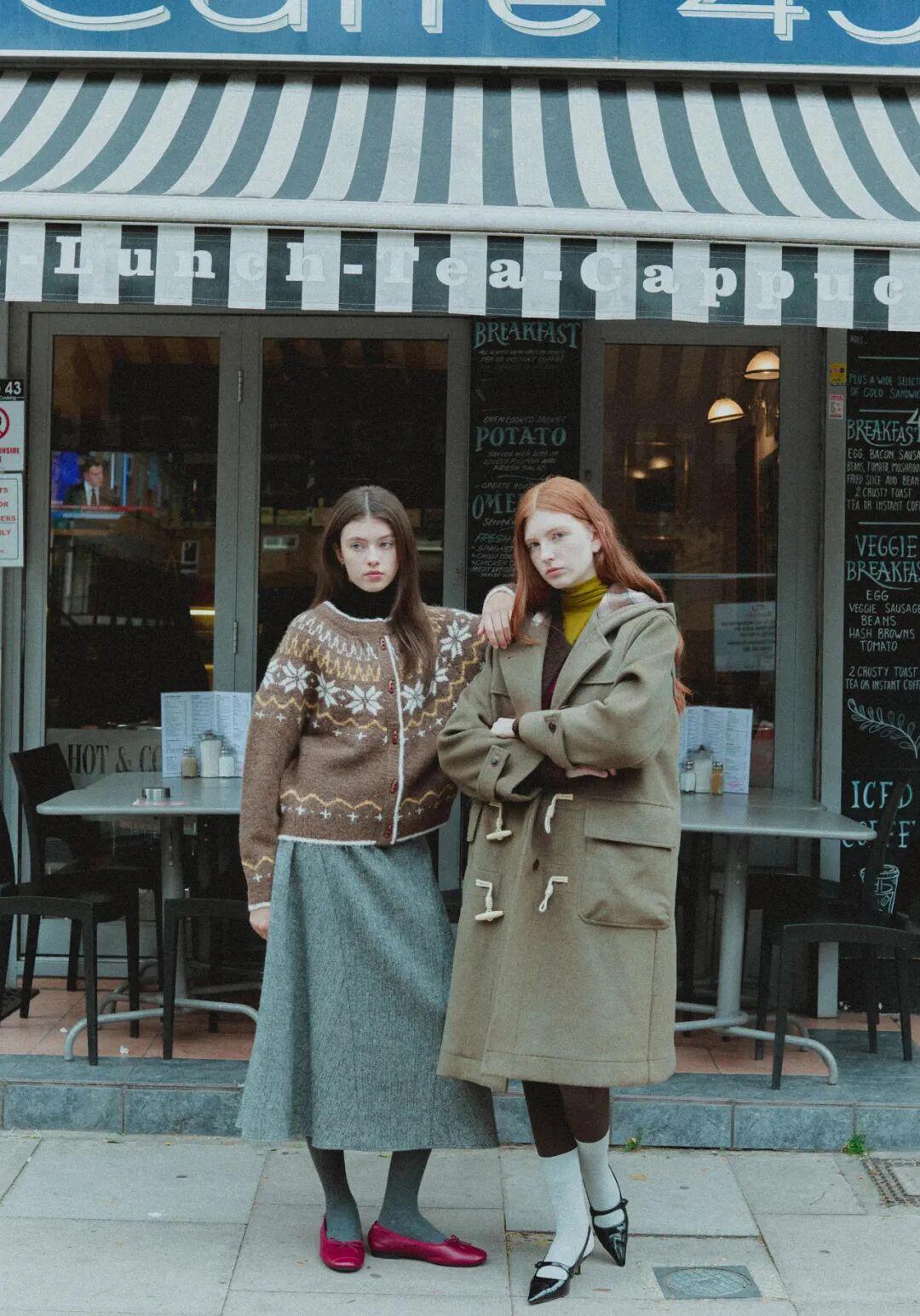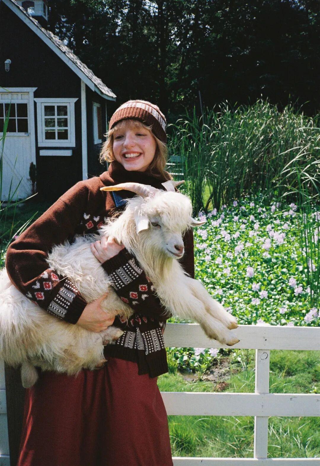 這一身細節也很有巧思:費爾島花紋的紅色與裙子呼應,帽子也和毛衣同色系。 ▼