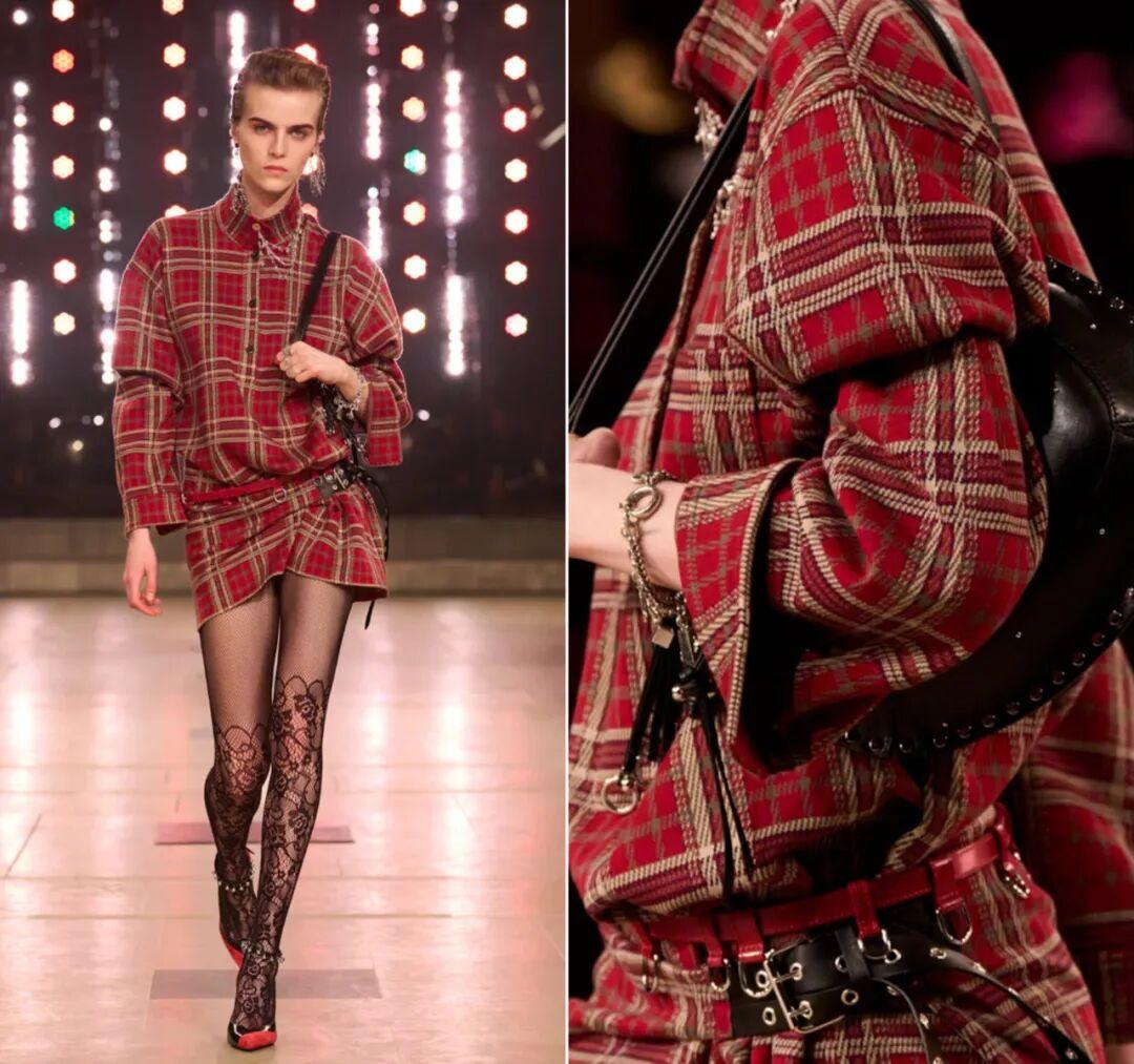 今年格紋裙也帶回了90年代超火的 垃圾搖滾風( Grunge )。