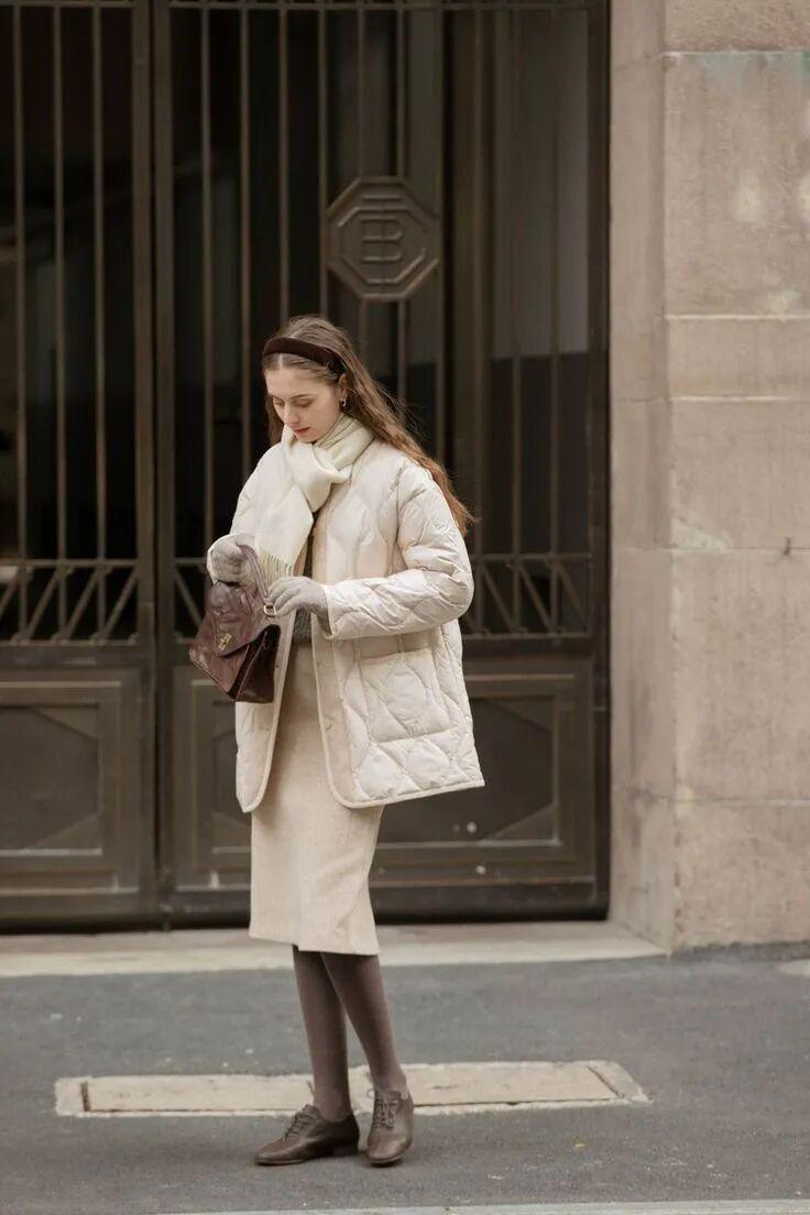 最後來聊一組實穿度、保暖性和質感都很在線的組合——毛呢裙+褲襪。 ▼