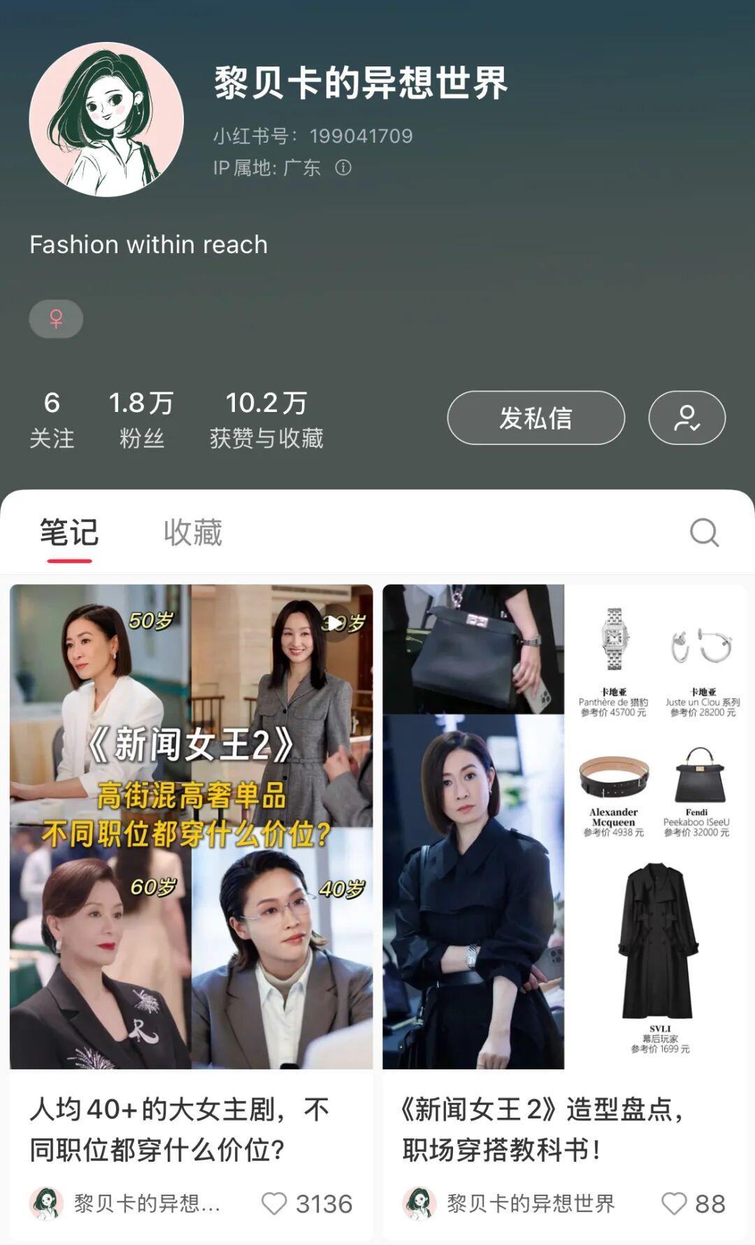 對了,《新聞女王2》結局了,我們也做了視頻拆解穿搭,除了微信視頻號,在我們官方的小紅書賬號上也有發佈。