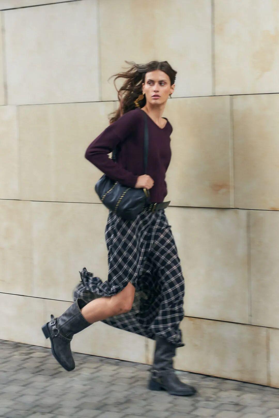 不知道大家有沒有同感,今年真的被格紋裙瘋狂刷屏了,特別是格紋裙+靴子這對組合。 ▼