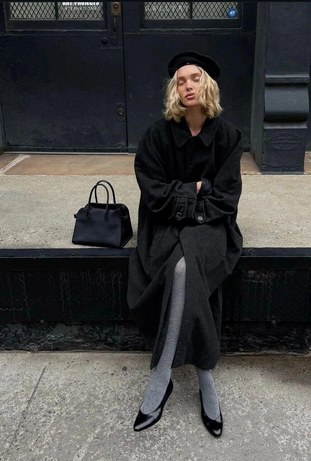 想要拉長腿部線條,推薦褲襪和鞋子選順色的搭配。比如,我們聊過很多次的經典黑褲襪+黑鞋的組合。▼