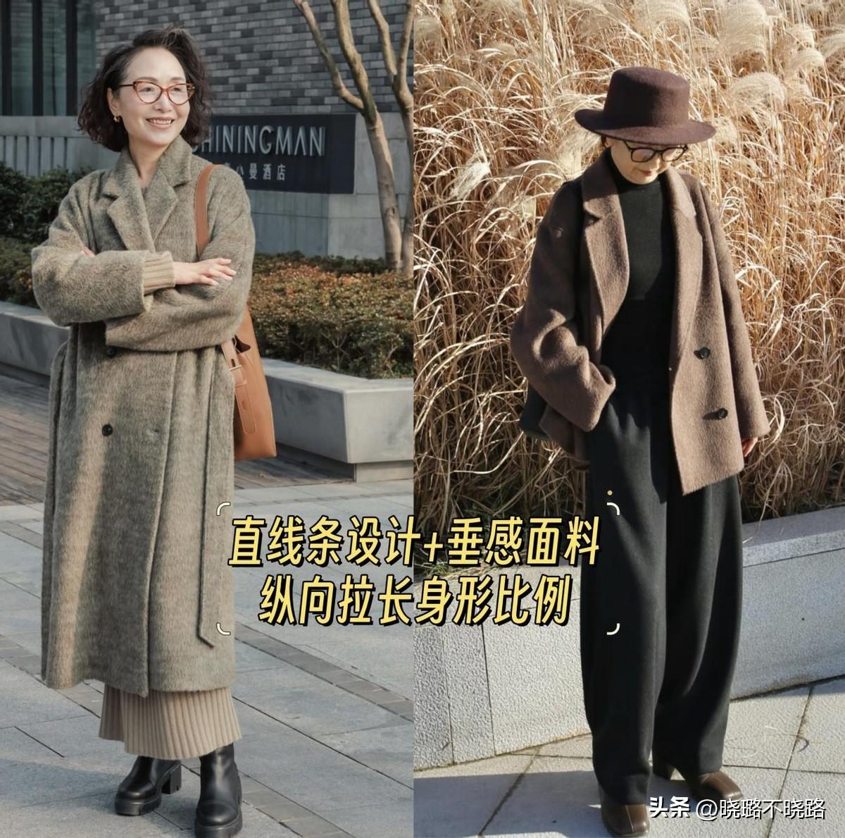 深冬到來,衣櫥裏的服裝單品,也要開始替換一波了,尤其是外套的挑選,建議大家不要選膨脹感太強的皮草、羽絨服,像這種面料有垂感,並且帶點挺闊感的大衣,纔是氣質的來源。
