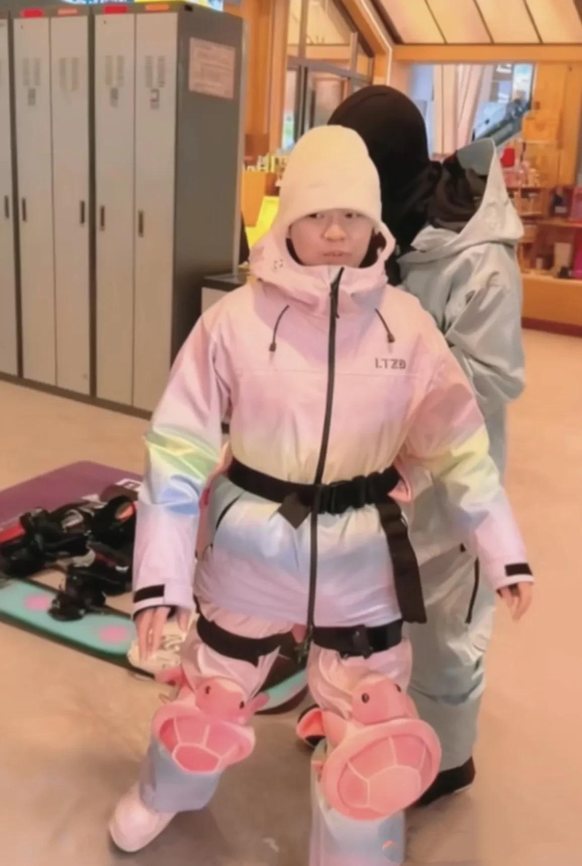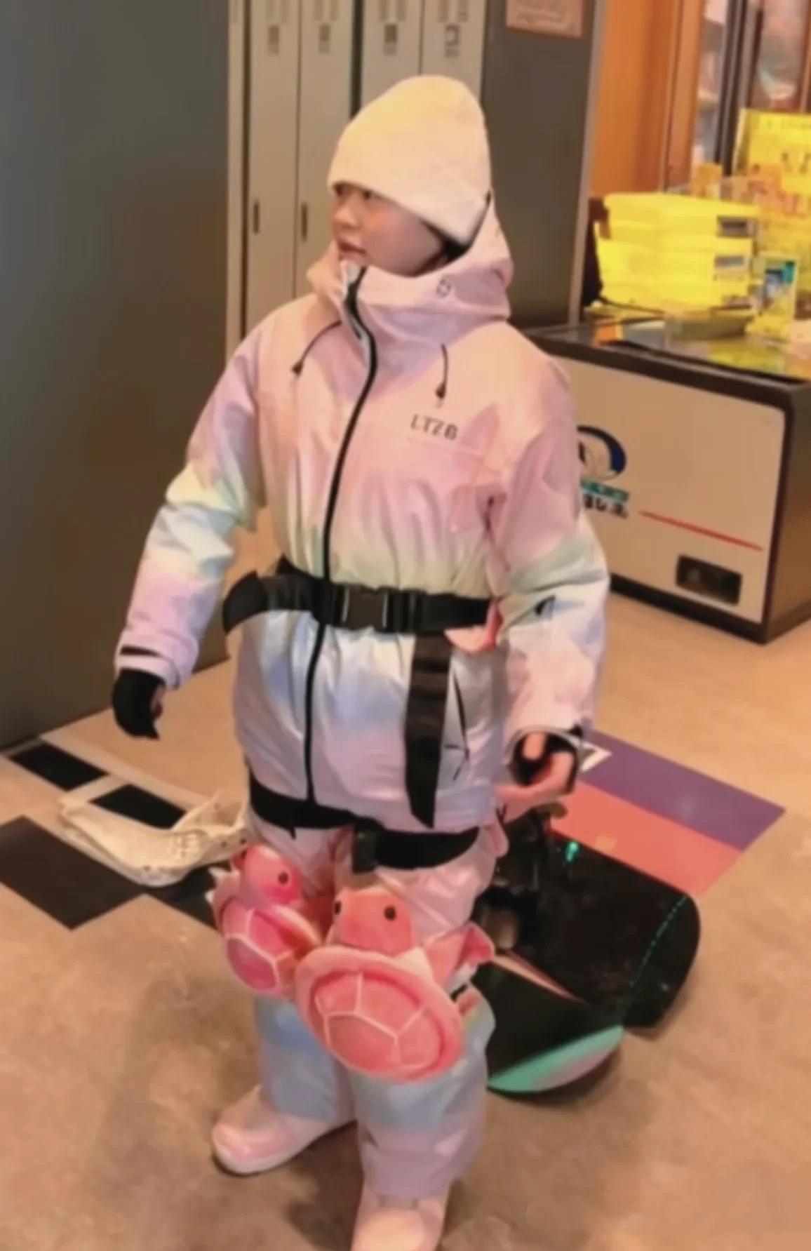 穿着滑雪服、帶着滑雪帽,還有3只粉色的小烏龜陪着她,全紅嬋這套裝備準備的也太齊全了吧。