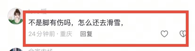 也有人問,“不是腳有傷嗎?怎麼還去滑雪”?就像是在質疑全紅嬋“無痛呻吟”一樣。全紅嬋的腳傷沒有恢復,但適當的滑雪影響也不是很大,總不能因爲腳傷就“閉門不出”吧。