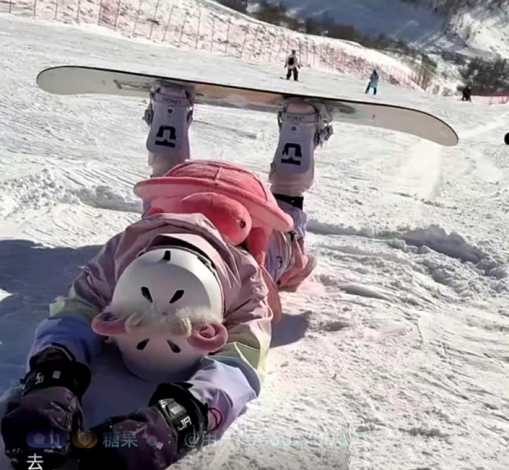 這裏的滑雪場很大,周圍也沒有太多的人,全紅嬋在這裏可以更大膽的施展拳腳。可能是重心不穩的緣故,全紅嬋以上來還是摔倒了。
