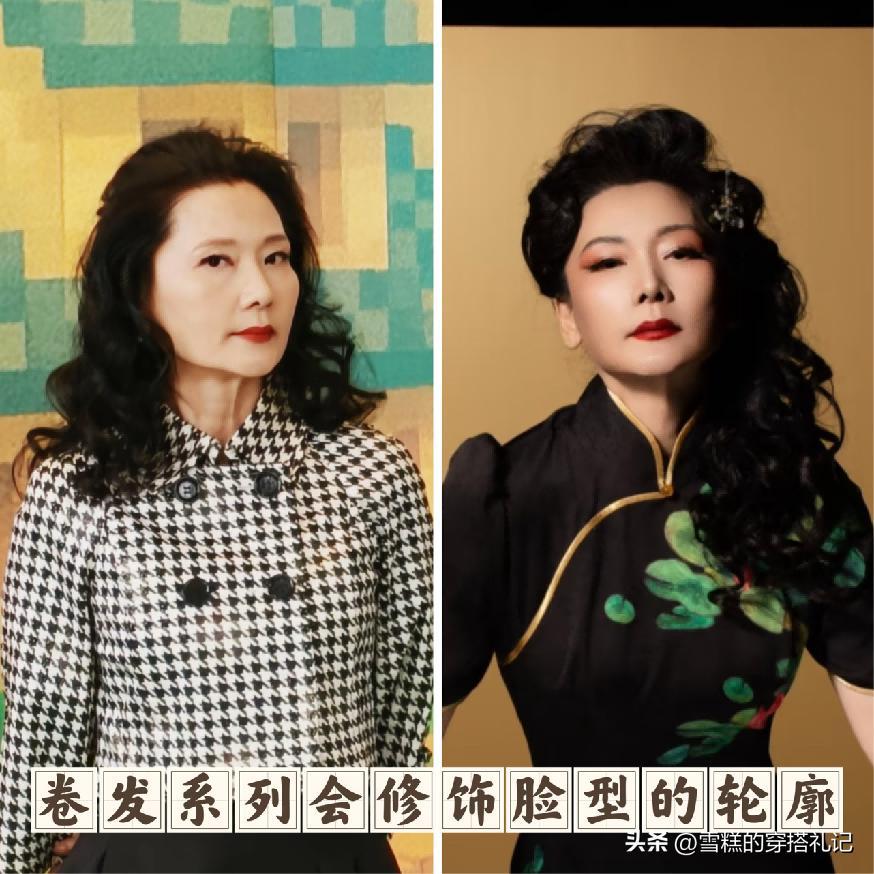而且可以對臉型的輪廓走向也起到絕對的修飾優勢,可以作爲當下年紀的首選哦!捲髮的髮型狀態也很適合各位方臉、或者是和何賽飛老師一樣的方圓臉女性優選起來了,整體的優勢真的很明確,重點在於顴骨或者是下頜骨的部位,會將其進行着重的修飾體現,要比常規的直髮更適合這位老師的臉型+五官。