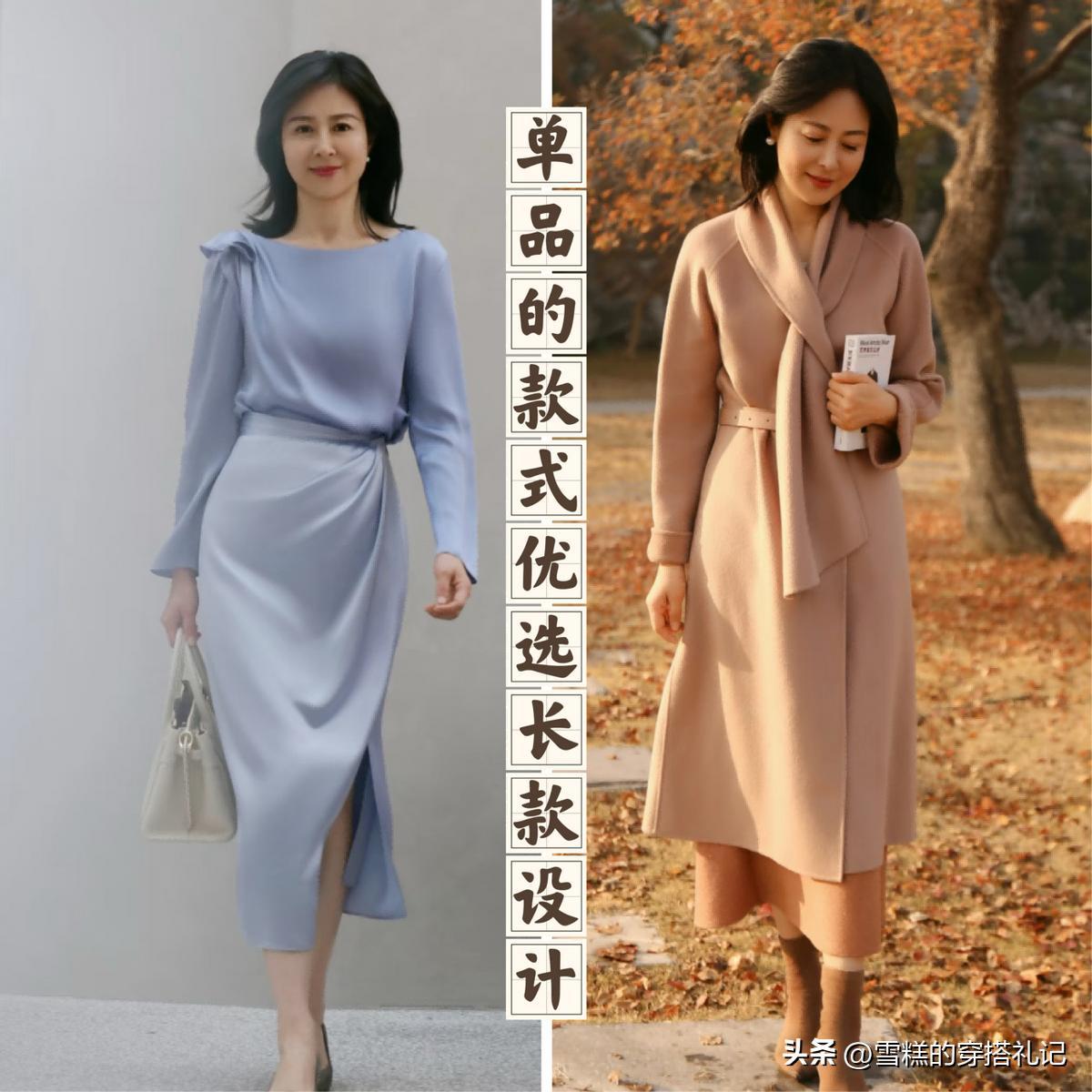 只要是上了年紀的女人,再搭配應用單品的時候一定是要將長款的設計爲主進行優選的哦,因爲最終的呈現還是要偏向於穩定和自然+對於我們身材的效果也有絕對的優化能力,身材要是有很多不足or線條的走向不好看的話,長款的設計單品纔是最佳優選!
