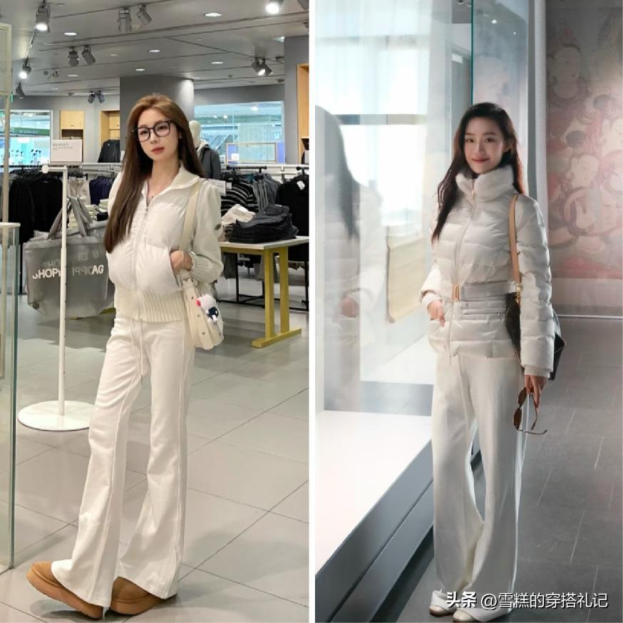 羽絨服和你的微喇褲完全可以優先於運用同色系的走向,尤其是想要強調自上而下的線條都很好看、很流暢很和諧的女性,這樣能夠讓輪廓更加明朗更加好看的展現出來。