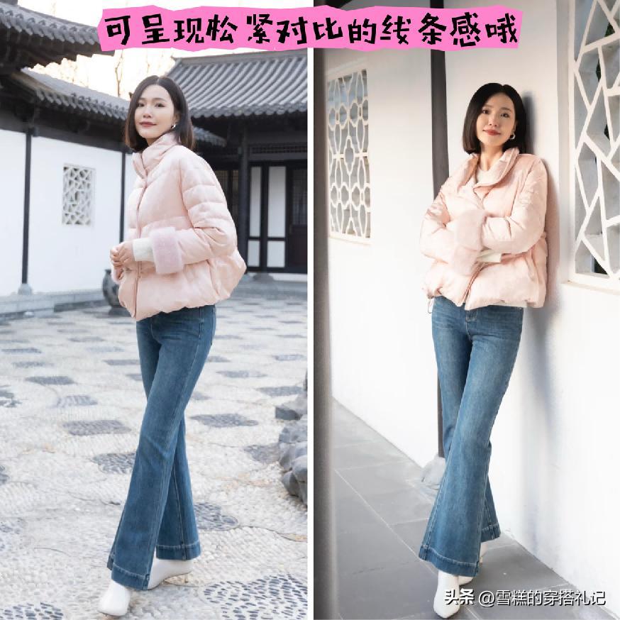 TOP二 短款羽絨服+微喇褲組合:優勢很明顯