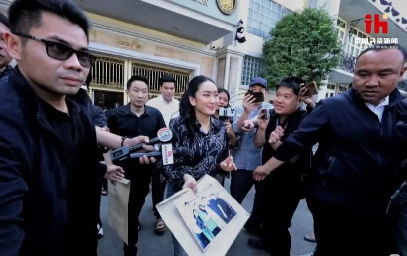 結束探視後,佩通坦和萍通塔都拿着合影走出來,佩通坦還向等在外面的民衆展示了大合影,告訴大家父親精神狀態很好,一切正常沒有問題。