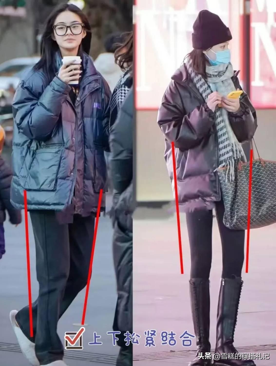羽絨服想要穿的好看,用對技巧是關鍵,蓬鬆感的遮臀羽絨服,很適合搭配“窄一點”的瑜伽褲、煙管褲、直筒褲,一鍵開啓“腿精模式”。